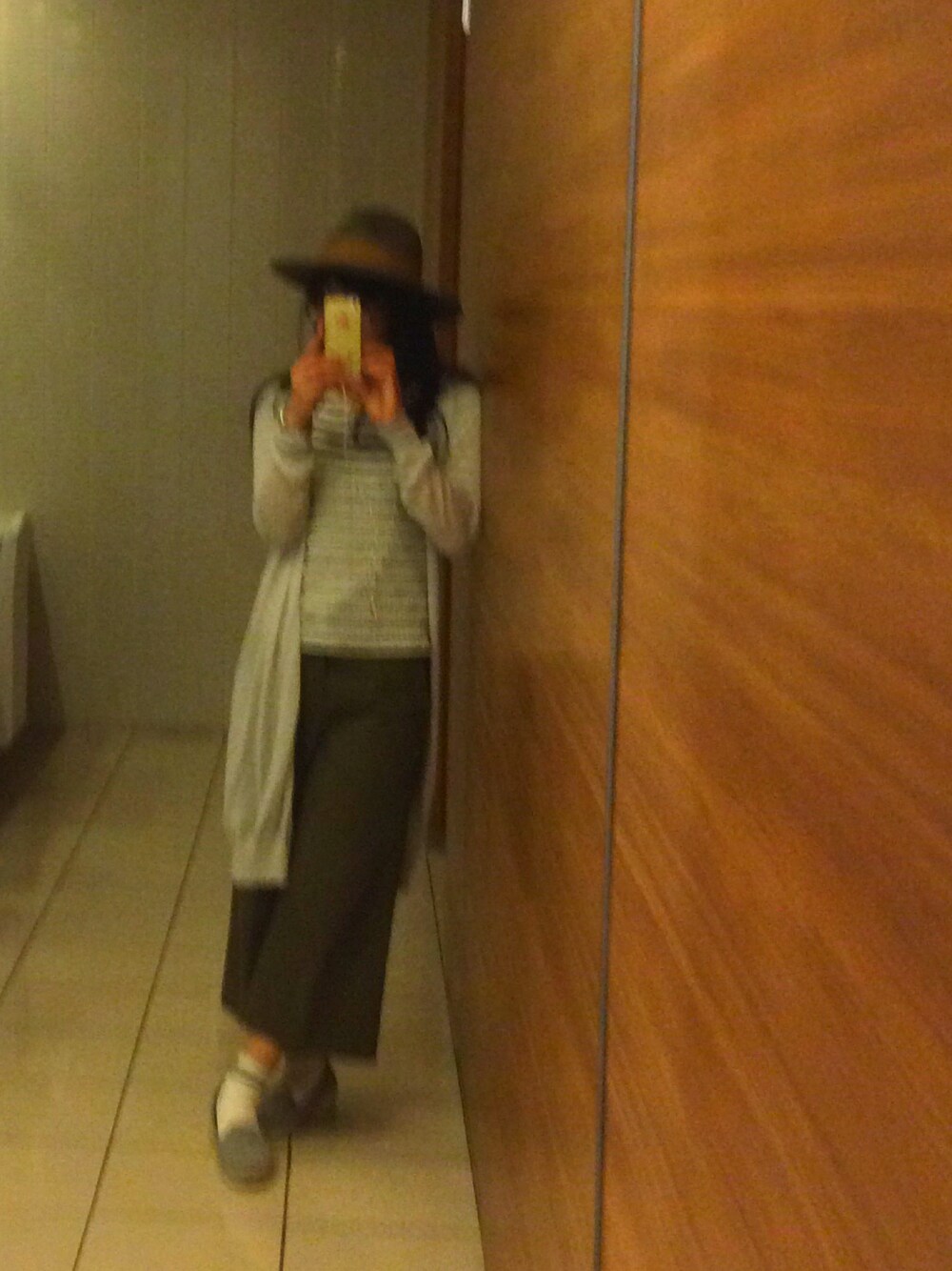 グレーの帽子がいい感じ。