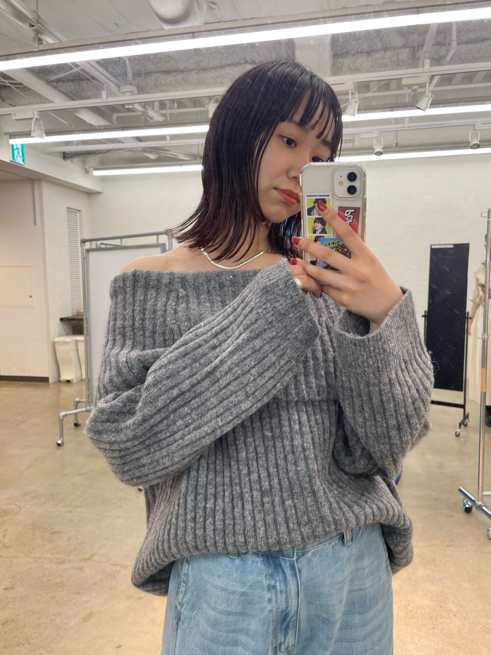 ○オフショル2wayニット 首周りにゴムがしっかり入っていて、オフショルとしてもそのままでも着て頂けます! オフショルにした時もゴムで止まるので、下がってくる心配がなく安心でした! ○カーヴィーラインデニム サイズ2を着用しています! 柔らかい素材でオールシーズン履きやすいです! カーブのラインがポイントで、シルエットを綺麗に見せてくれます!
