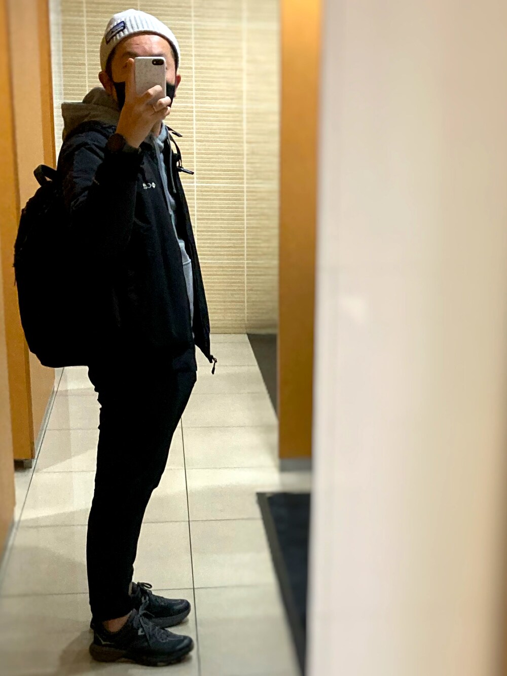 アウトドアブランド推しの 雨の日全身撥水コーデ