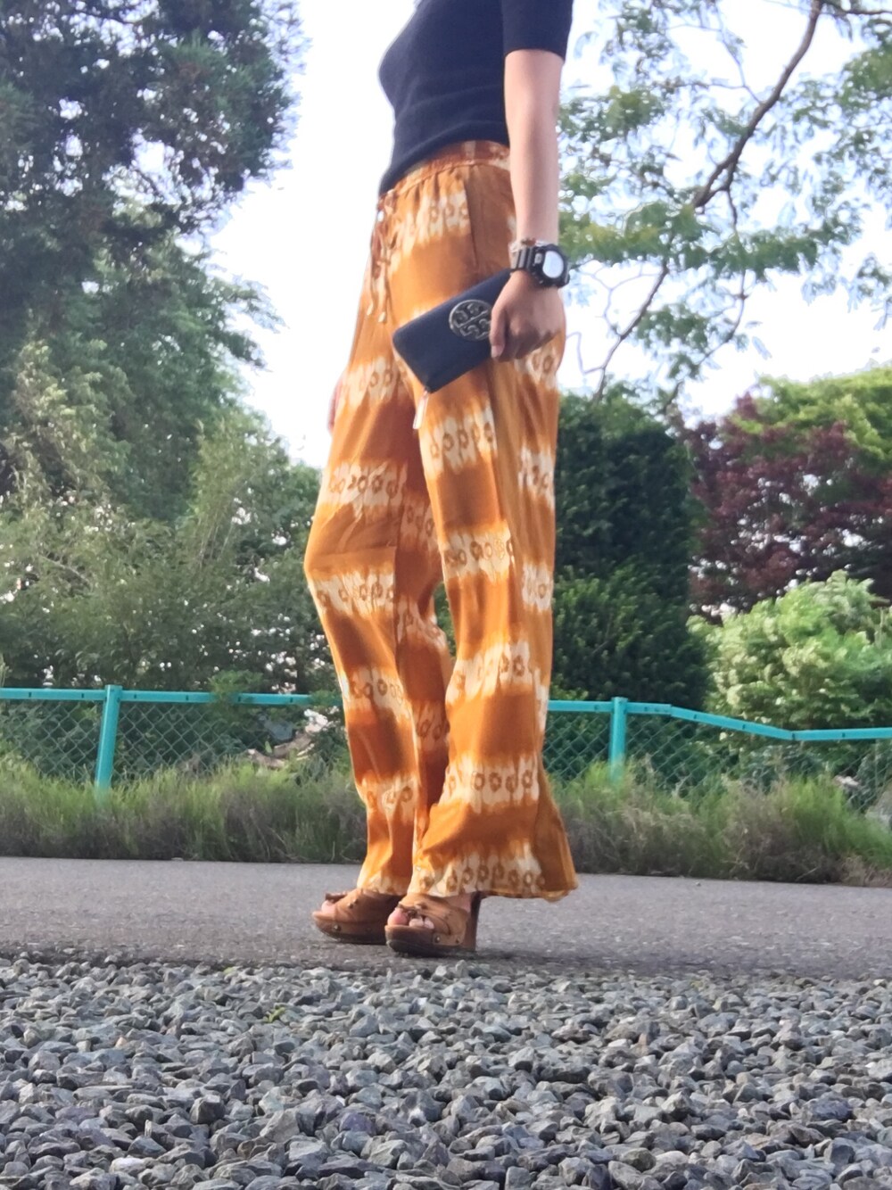 蒸し暑かったので薄手のパンツにタートルリブニットを合わせて涼し気な格好にしました