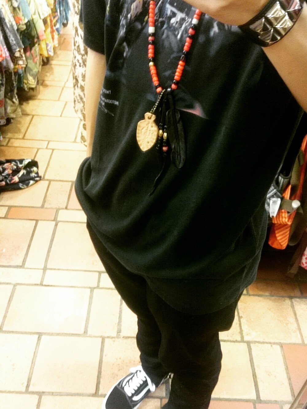 Tシャツは24karats×Atsuko TanakaとのコラボのTシャツです、XLで大きめに着てます。 ネックレスはルースターキングです。 パンツはh&mのものでfearofgodのような形になっていてとてもいいです。 靴はvansのoldskoolです、シンプルで何にでも合ってお気に入りです。 ブレスレットはジョンローレンスサリバンのものです。 全体的に黒にしてネックレスが目立つようにしました。