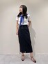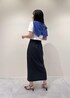 Tシャツはハリがありコンパクトめなサイズ感のためお仕事にも活用頂けます! ハイウエストのタイトスカートと合わせることでメリハリがついてすっきり見え。 オフィスではブルーのカーディガンを羽織ってクーラー対策に◎