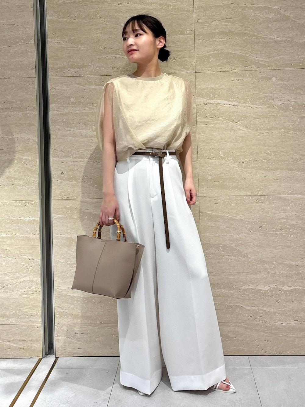 AYA(ROPE' moi salon et ropé 大阪高島屋)のベルト「【サスティナブル】スリムレザーベルト」を使ったコーディネート