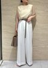 涼しげなノースリーブは気になるけど二の腕は隠したいという方におすすめのプルオーバー。 絶妙に二の腕をカバーしてくれるので挑戦しやすいです! 程よく短めの着丈なのでウエストインせずに決まります◎