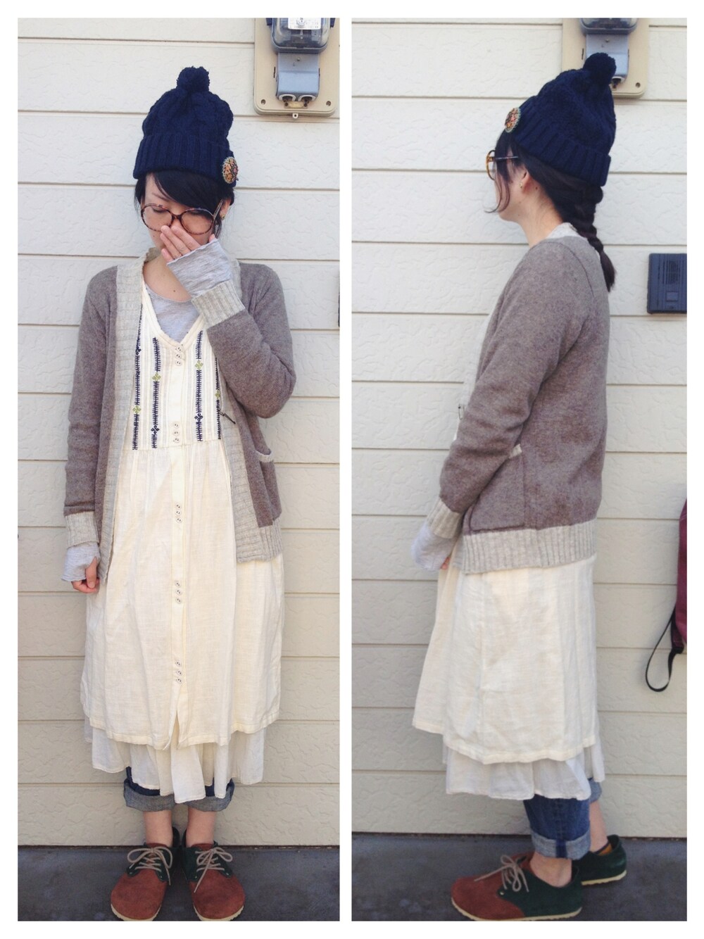 ニット帽 : H&M カーデ : HEART MARKET ワンピース : チャイハネ 靴 BIRKENSTOCK