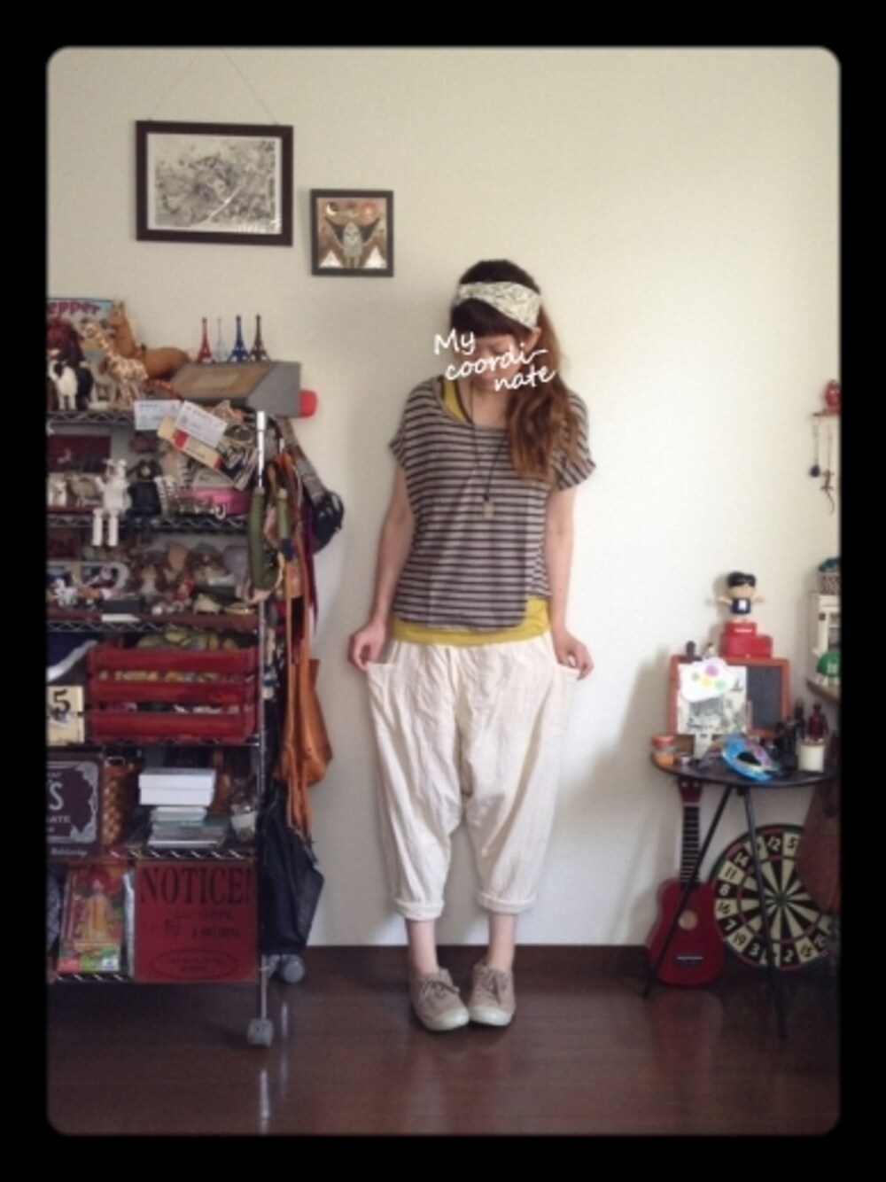 2013/7/20 バンダナを付けたかったコーデ スカートにしようと思ってたのですが 今日はポケットがないと不便だったので 結局パンツにしました