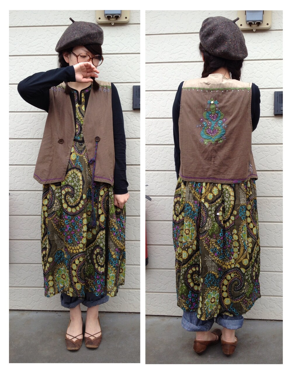 ベレー帽 : どこかの雑貨屋さん ワンピース : むげん堂 ベスト : チャイハネ