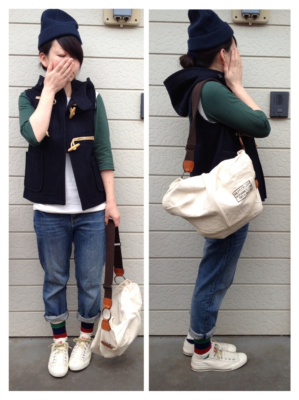 ベスト : ノーブランド ラグラントップス : BEAMS BOY パンツ : shuca スニーカー : コンバース