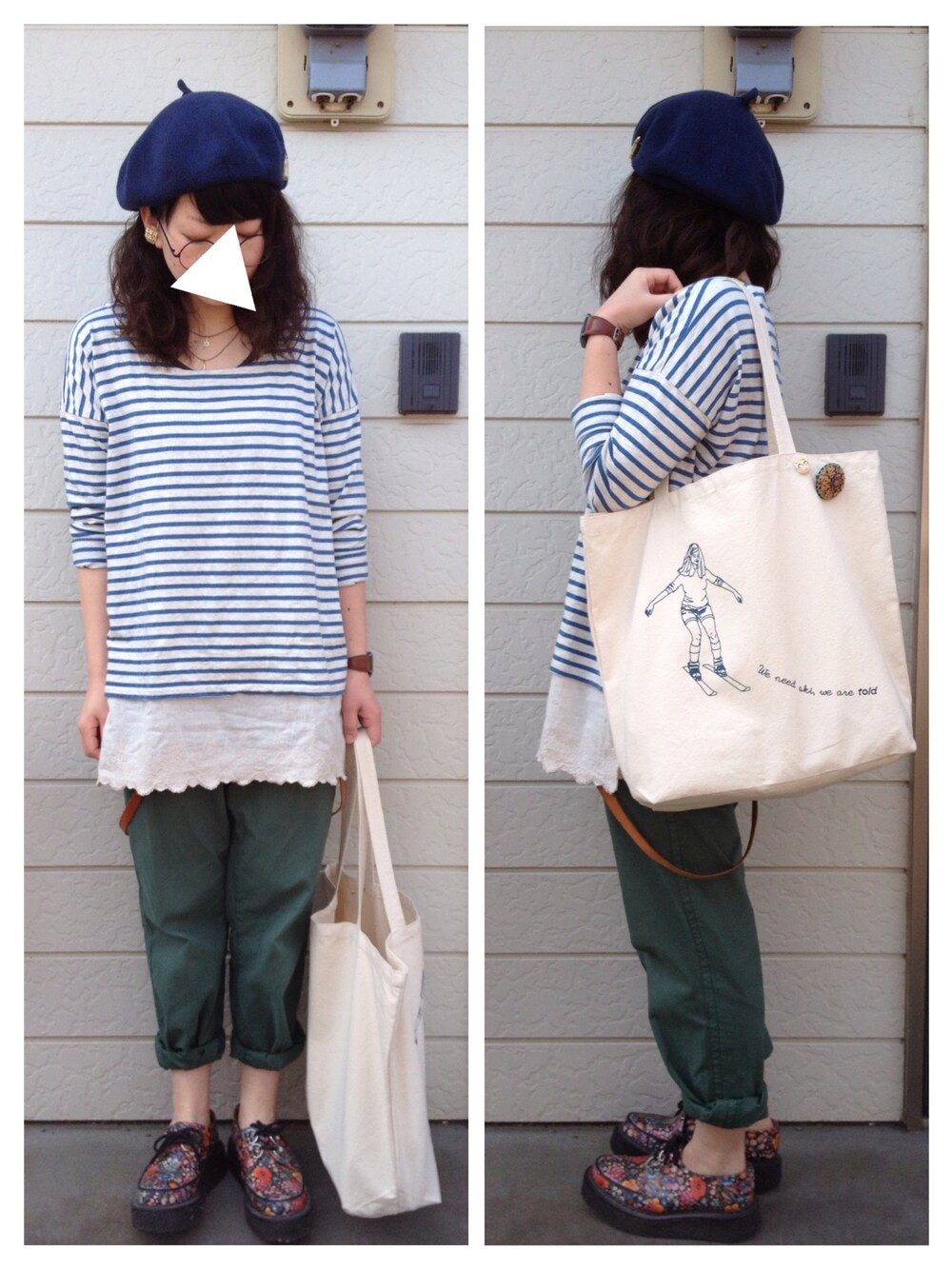 帽子 : ノーブランド ボーダーT : pual ce cin バッグ : toldトート
