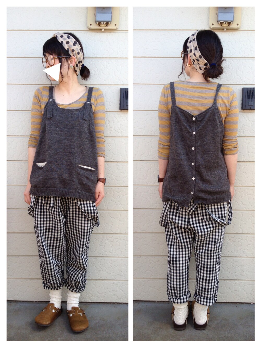 トップス : SM2 ボーダーT : 無印良品 サロペット : PAR ICI 靴 : ビルケンシュトック
