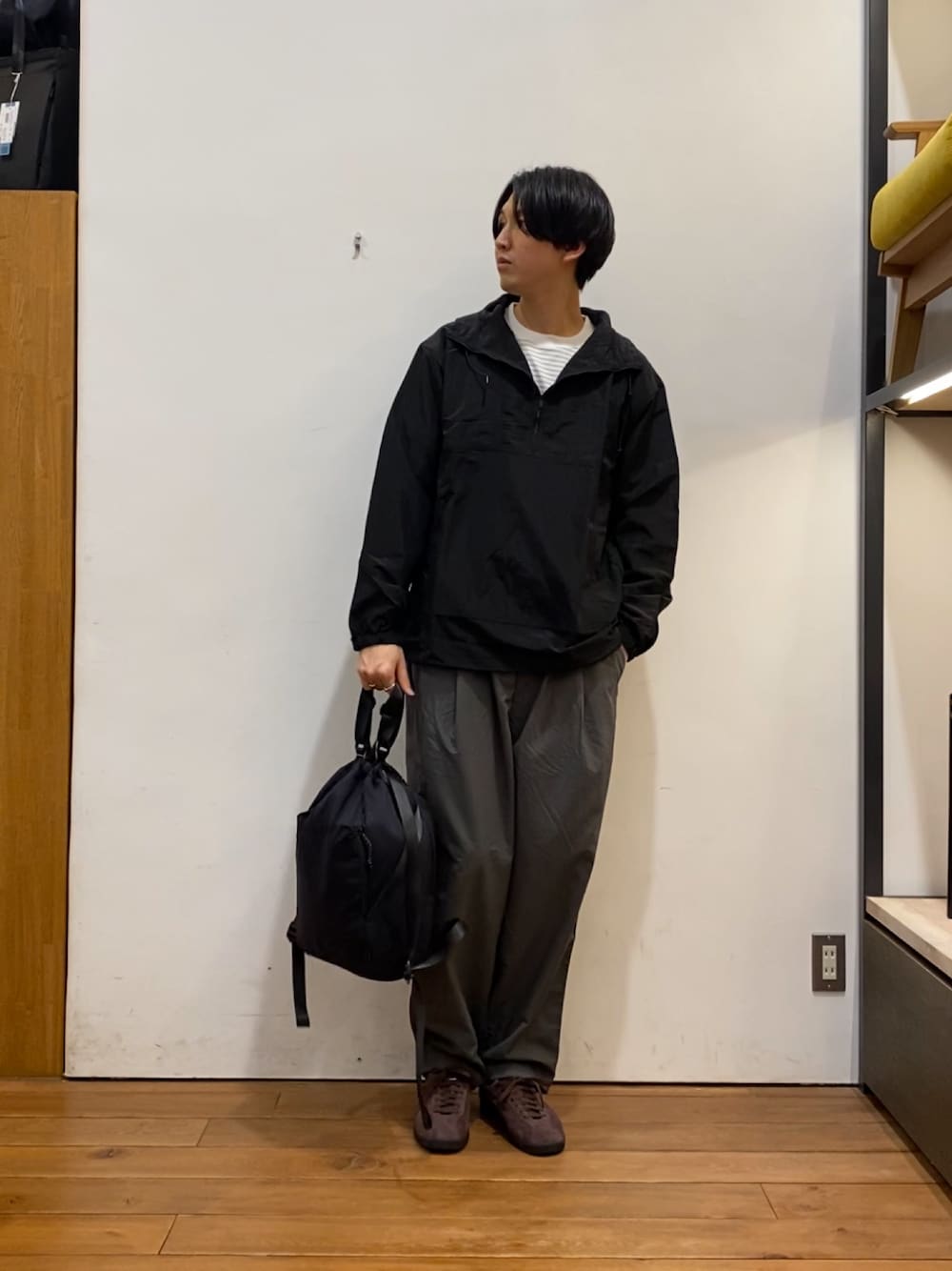 EKALのナイロンパンツは、軽量性、撥水性、UVカット機能のあるナイロンタッサー生地を使用しているアイテムです! アノラックパーカーも相まって、アウトドアでもタウンユースでも活躍できるコーディネートです!