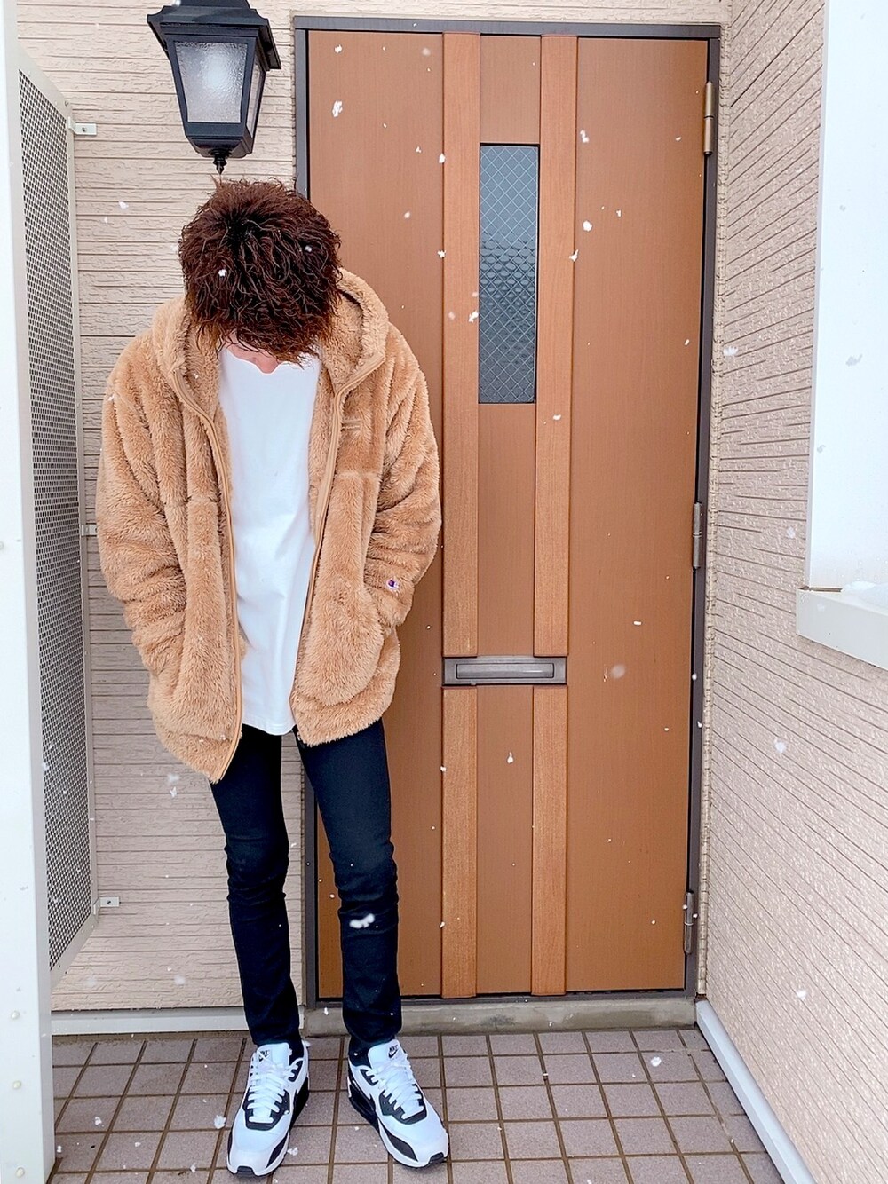 Tk_11のパーカー「Champion×relume / 別注チャンピオン SHERPA FLEECE スナップパーカー#」を使ったコーディネート