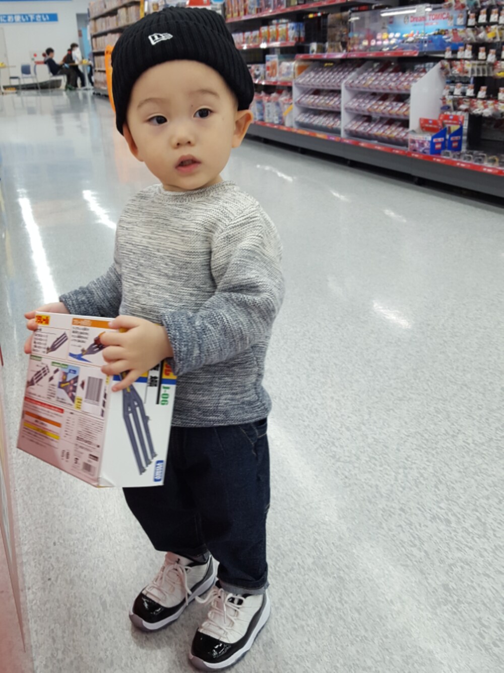 パパとお揃いのNIKEの靴をはいて😆😆😆❤ 帽子は寒すぎて購入💨💨😭 ニットはNEXTで半額の1000円ちょっとでした👏👏👏🎵