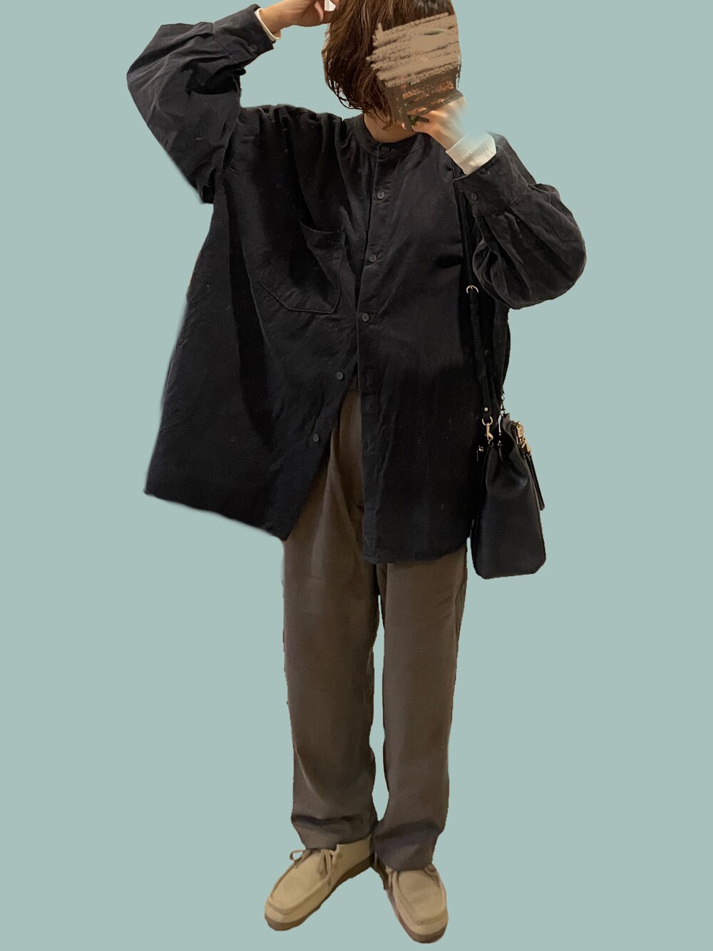 _nayuuuuのシャツ/ブラウス「コーデュロイボリュームスリーブバンドカラーシャツ」を使ったコーディネート