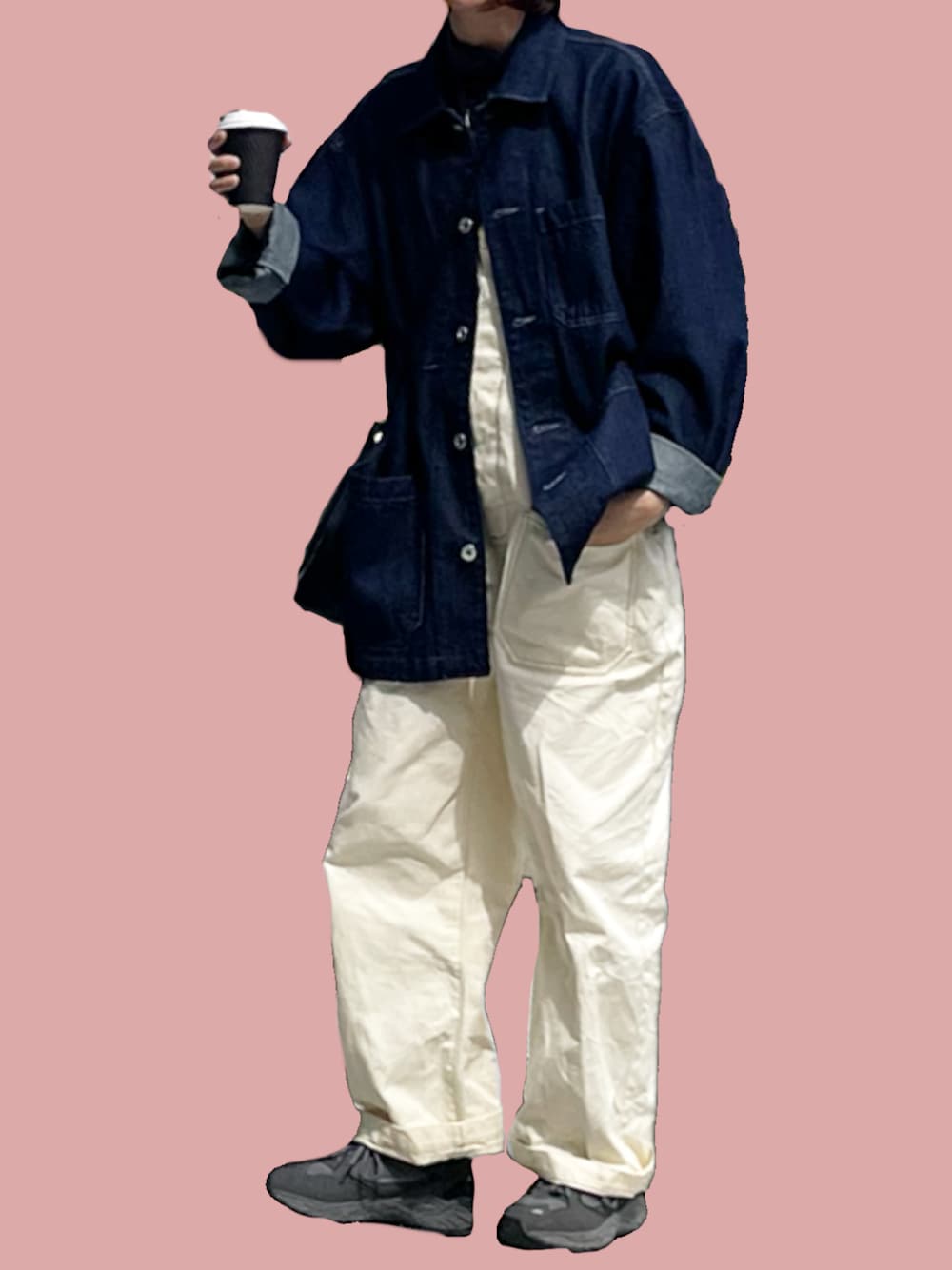 _nayuuuuのカバーオール「紳士 木の実から作ったカポック混デニム カバーオール」を使ったコーディネート