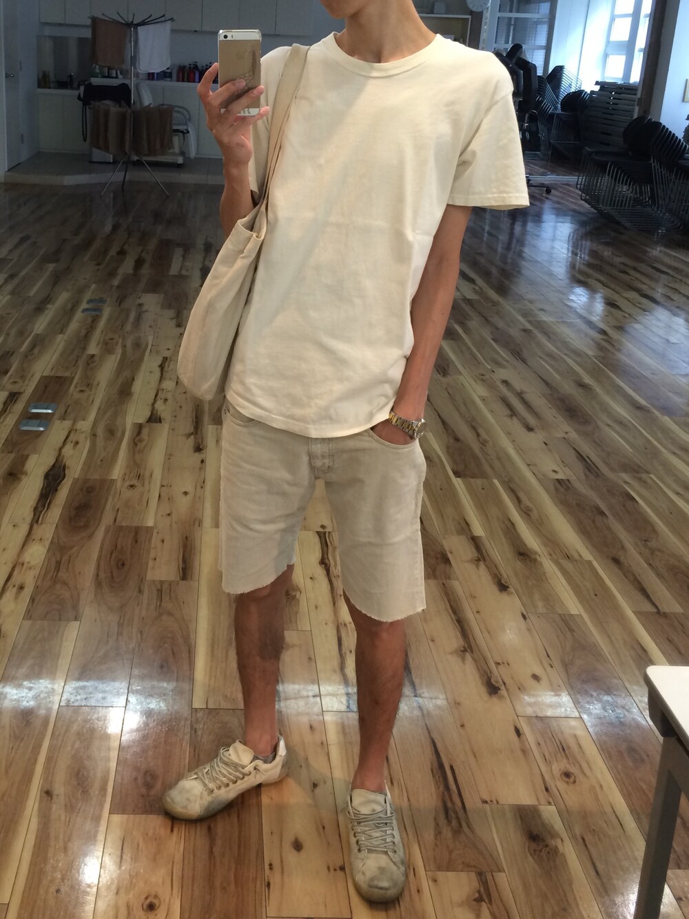 質感で差をつけるホワイトコーデ オフホワイト、アイボリー、コーデュロイ、ダメージ、ユーズド感、、、 キレイな白よりこんなが好きです。 Tシャツ:FRUIT OF THE LOOM タンク:miller ショーツ:417 by EDIFICE スニーカー:OSKLEN トート:BROOKS BROTHERS ではでは