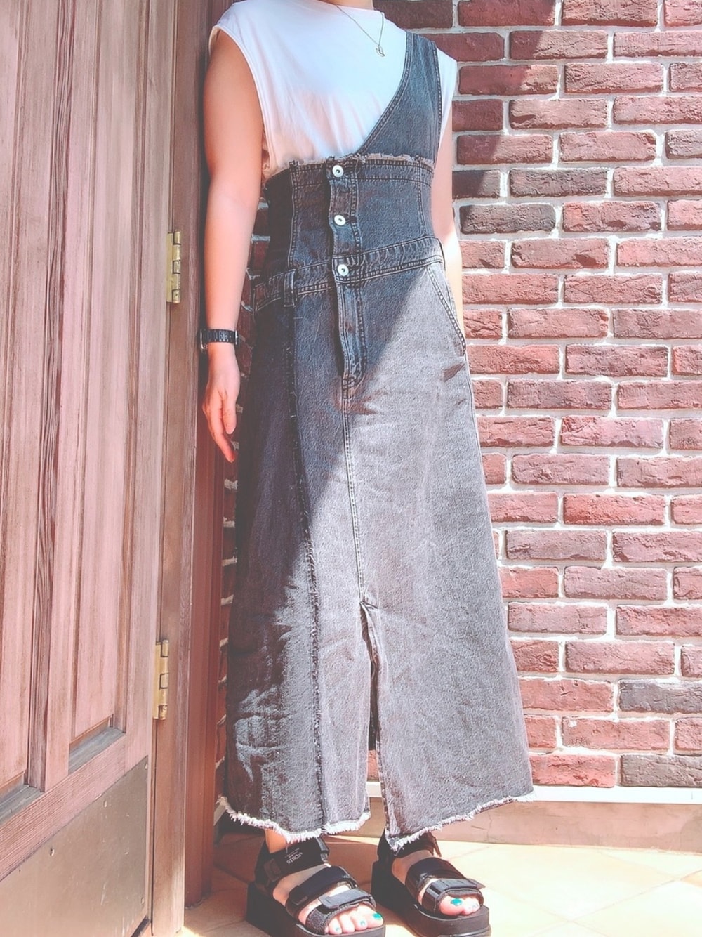 Natsumiのワンピース「ケミカルデニムワンショルワンピース」を使ったコーディネート