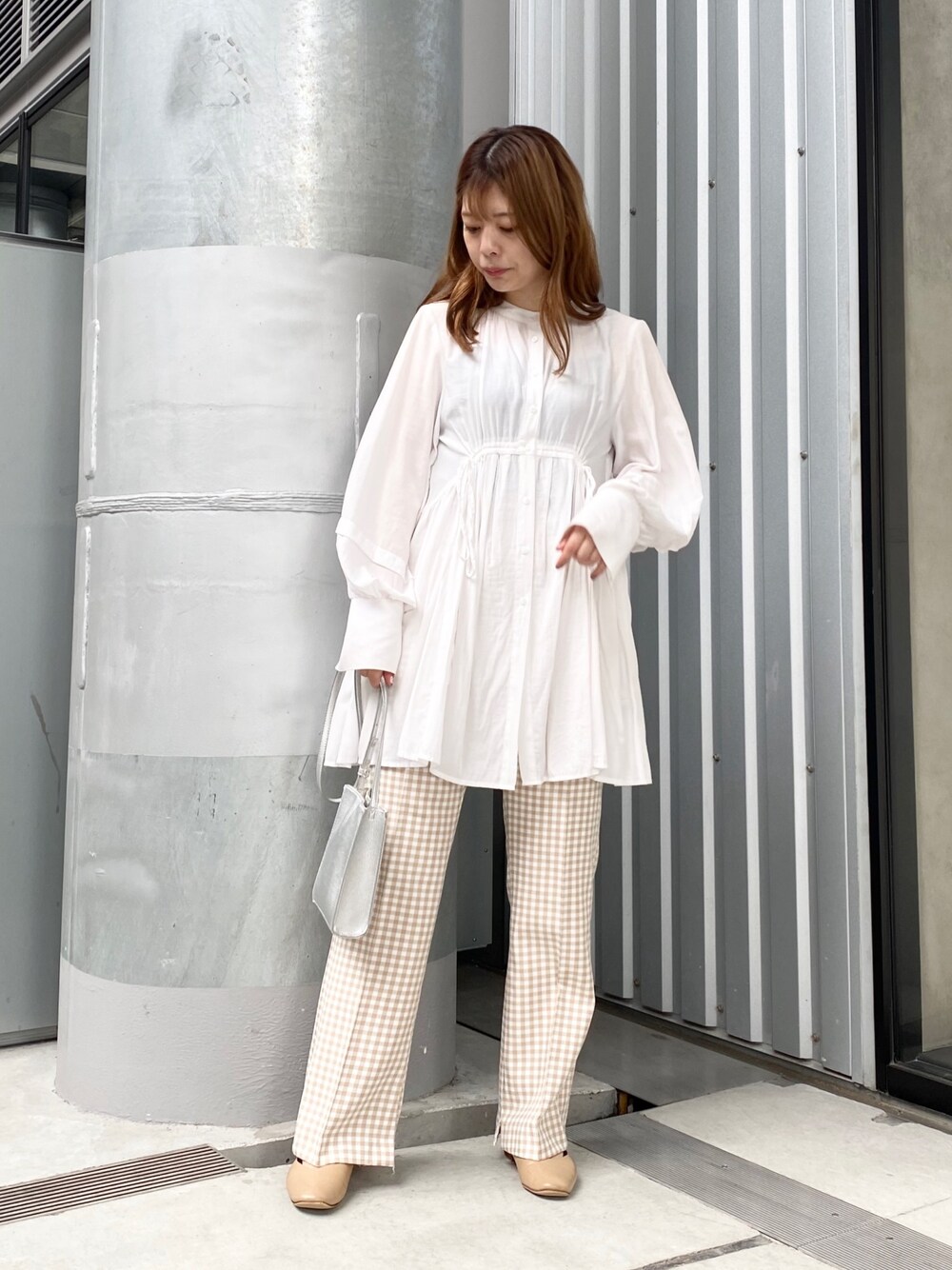 この前の私服コーデ☺︎ PAGEBOYのシルバーバッグは どんなスタイルにもあうのでヘビロテ❤︎ シャツ大好き人間なので 涼しくなったら毎日着てます。笑