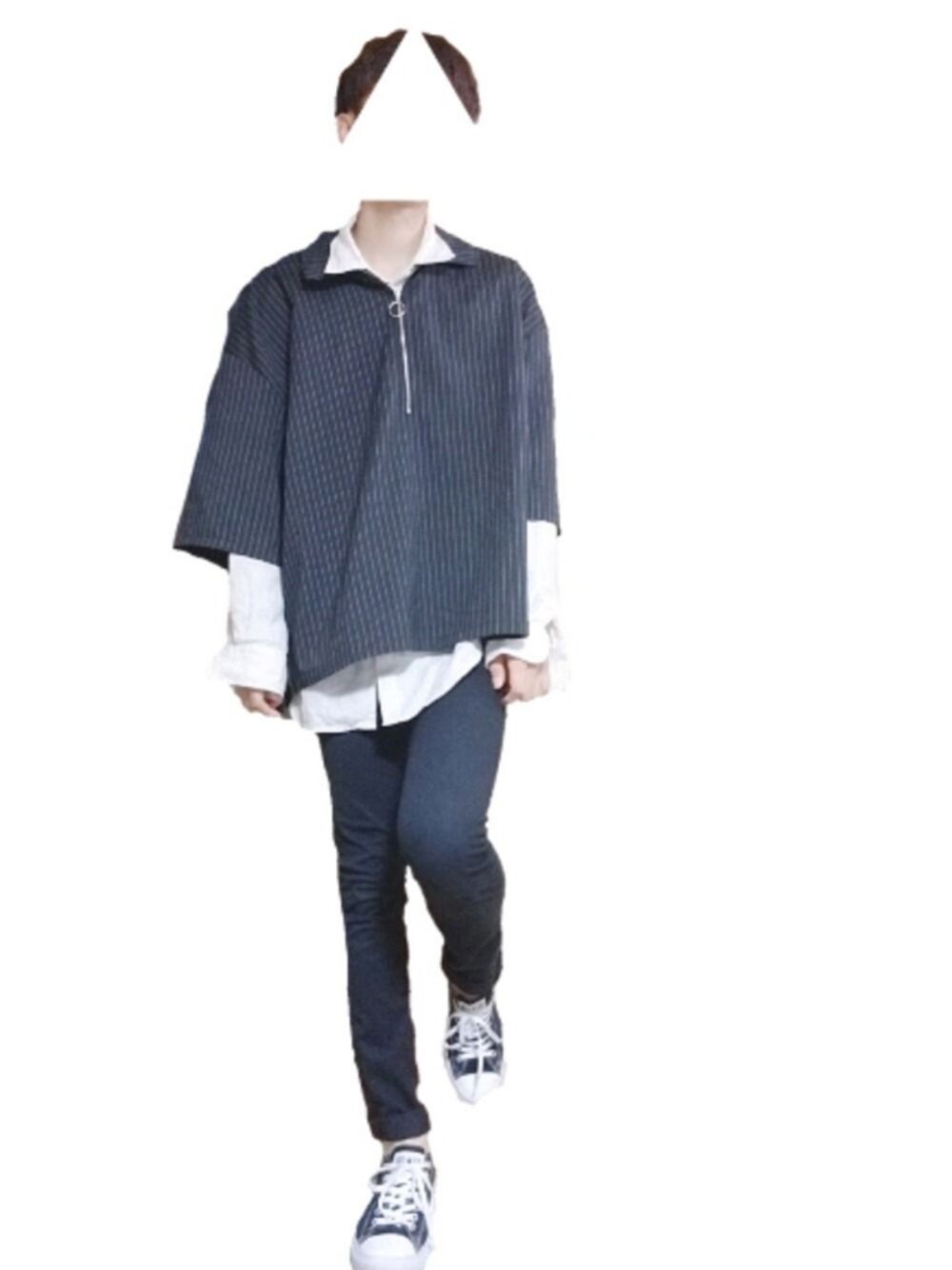 TuNのシャツ/ブラウス「【ビッグシルエット】ハーフジップシャツ リングジップ」を使ったコーディネート