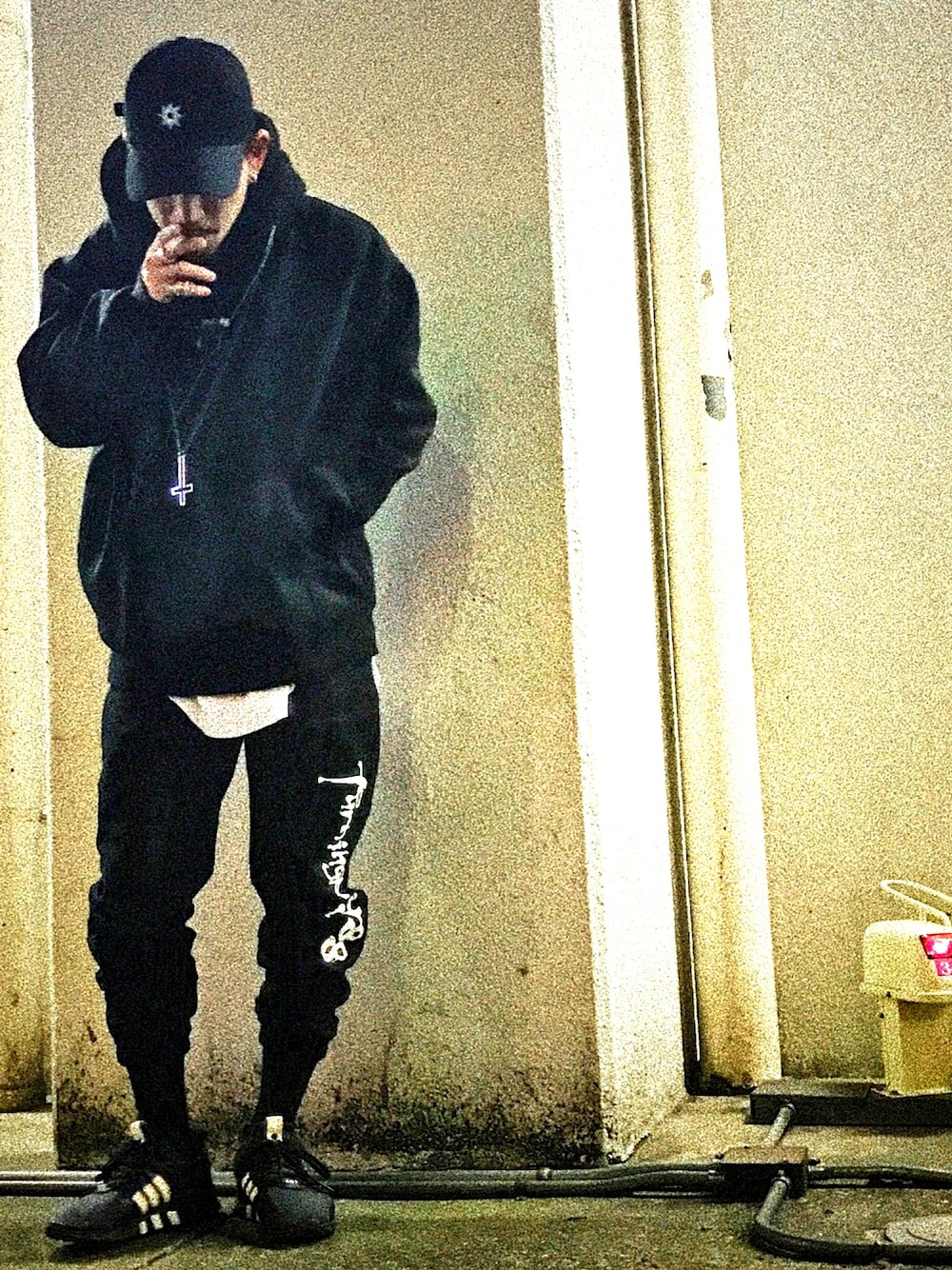 Turningpoint88のパーカー「今シーズンの象徴ともいえるクロスモチーフを バックプリントにて大胆に配置したアイテム。 フードには【Co-create】、フロントにはスモールロゴを配しており、アウターを着用しても存在感のあるデザイン。」を使ったコーディネート
