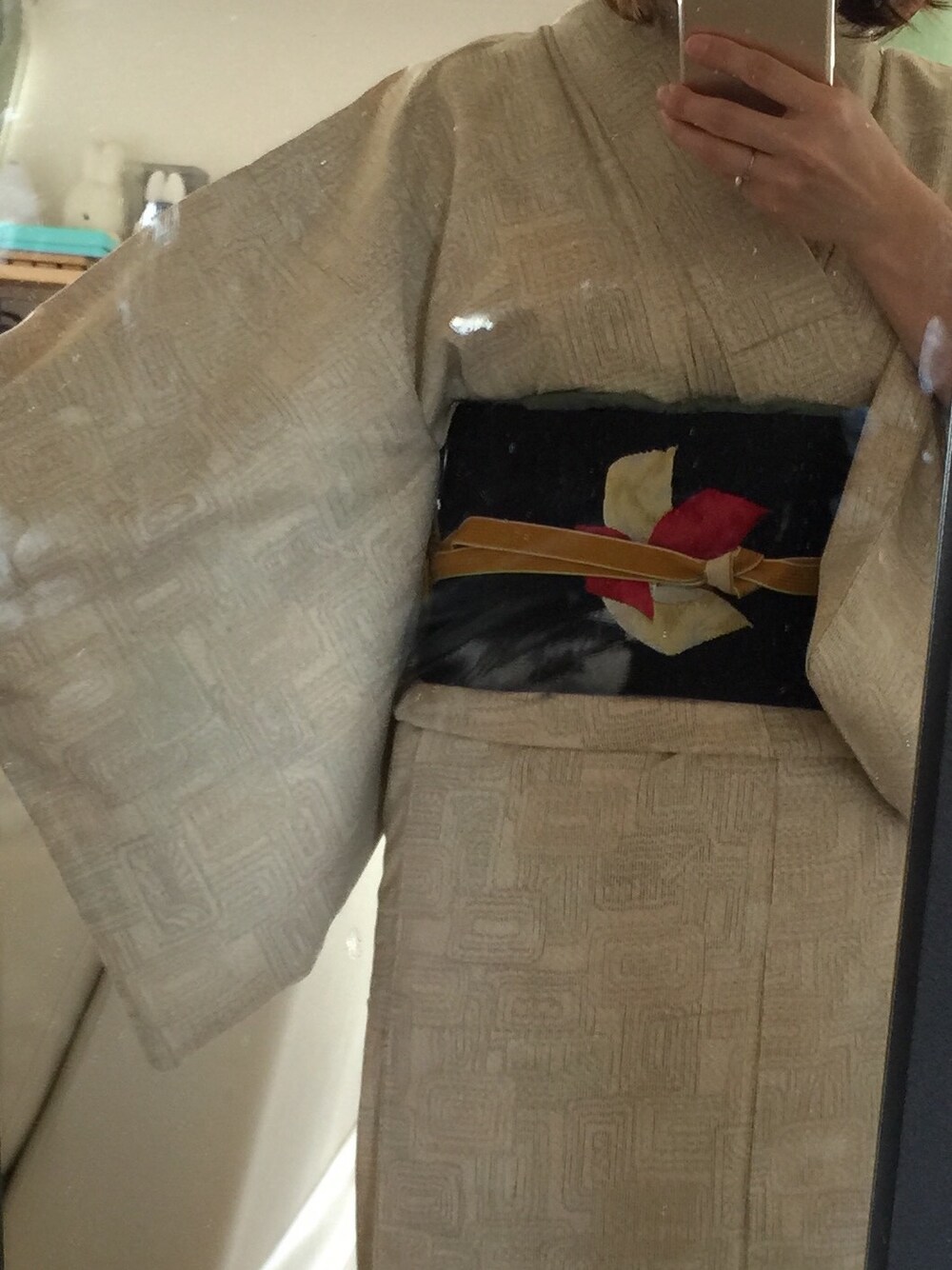 帯 花刺繍。 前にくる柄をもう少し横に寄せたい。
