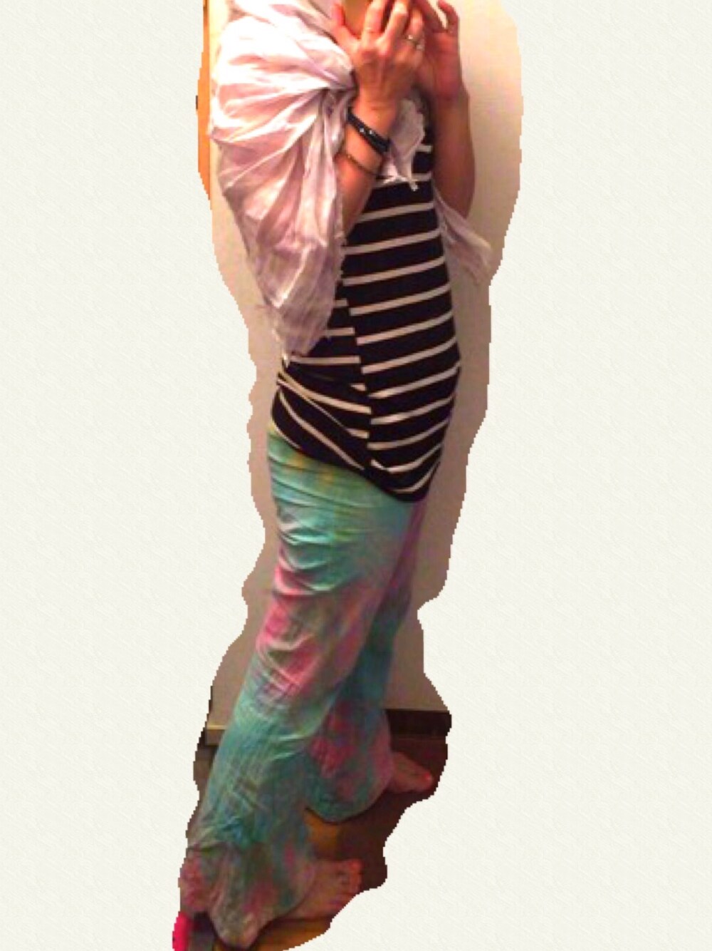 暑いので涼しい格好しかできない… 外に出るときは、あまりの肌の露出はあかんかな…と ストール巻き巻きで。