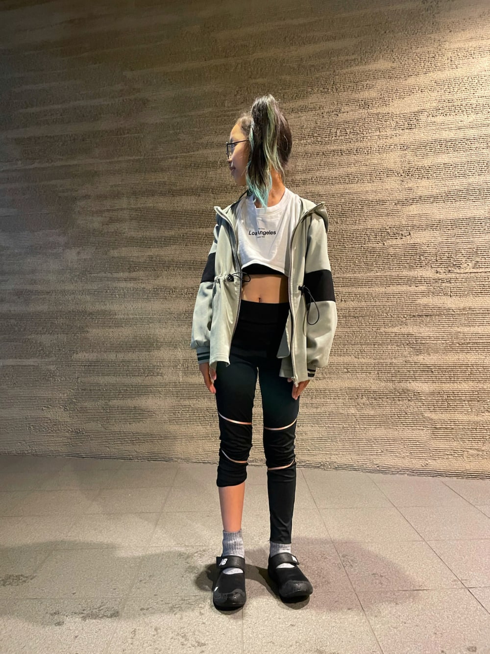 ダンス練習の日のコーデ。 行き帰りはダテメガネを合わせてちょっと韓国ファッションっぽくしたかった様子。