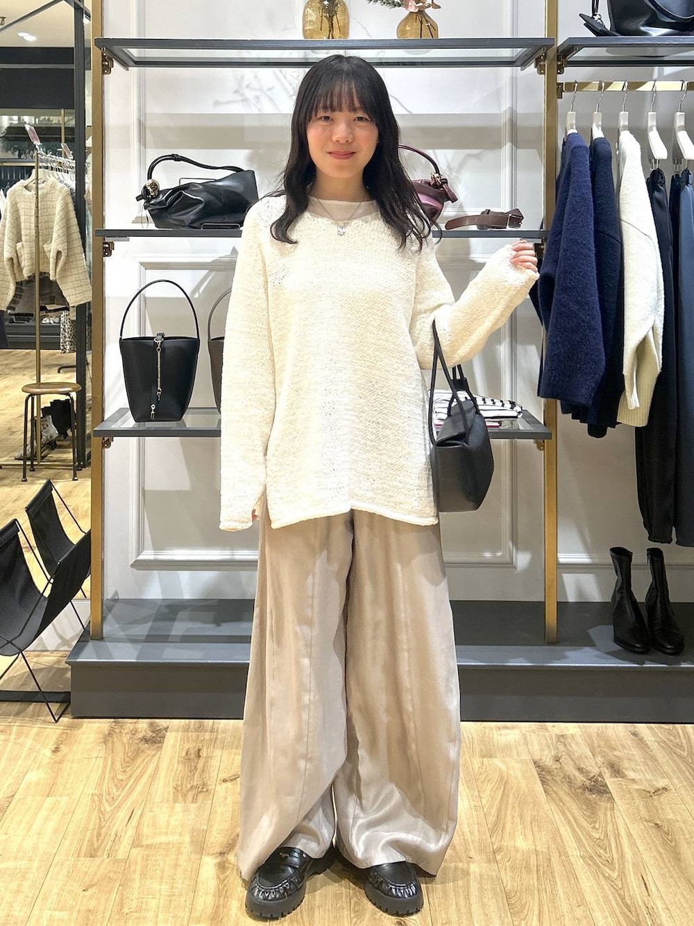 ☆着用アイテムは使用アイテムからご購入できます☆ 【ゆるっとシルエットがかわいい!お出かけコーデ】 ・トップス 毎年人気のテープヤーンニットです!ほどよい透け感が春っぽさをプラスしてくれます〜!今の時期は長袖のインナーを入れて、暖かくなったらキャミソール1枚で大丈夫です! ・ボトムス(Fサイズ) サテン生地のふわっとした丸みがかわいいイージーパンツです!ウエストがオールゴムなので履き心地バツグンです…!ツヤっとした生地なので楽だけど綺麗めに見えるパンツになります!あと全然体のラインを拾わない! ・ローファー(38サイズ) スニーカーのような履き心地で長時間歩いても疲れません!ローファーをカジュアルに使いたい方はとてもおすすめです!