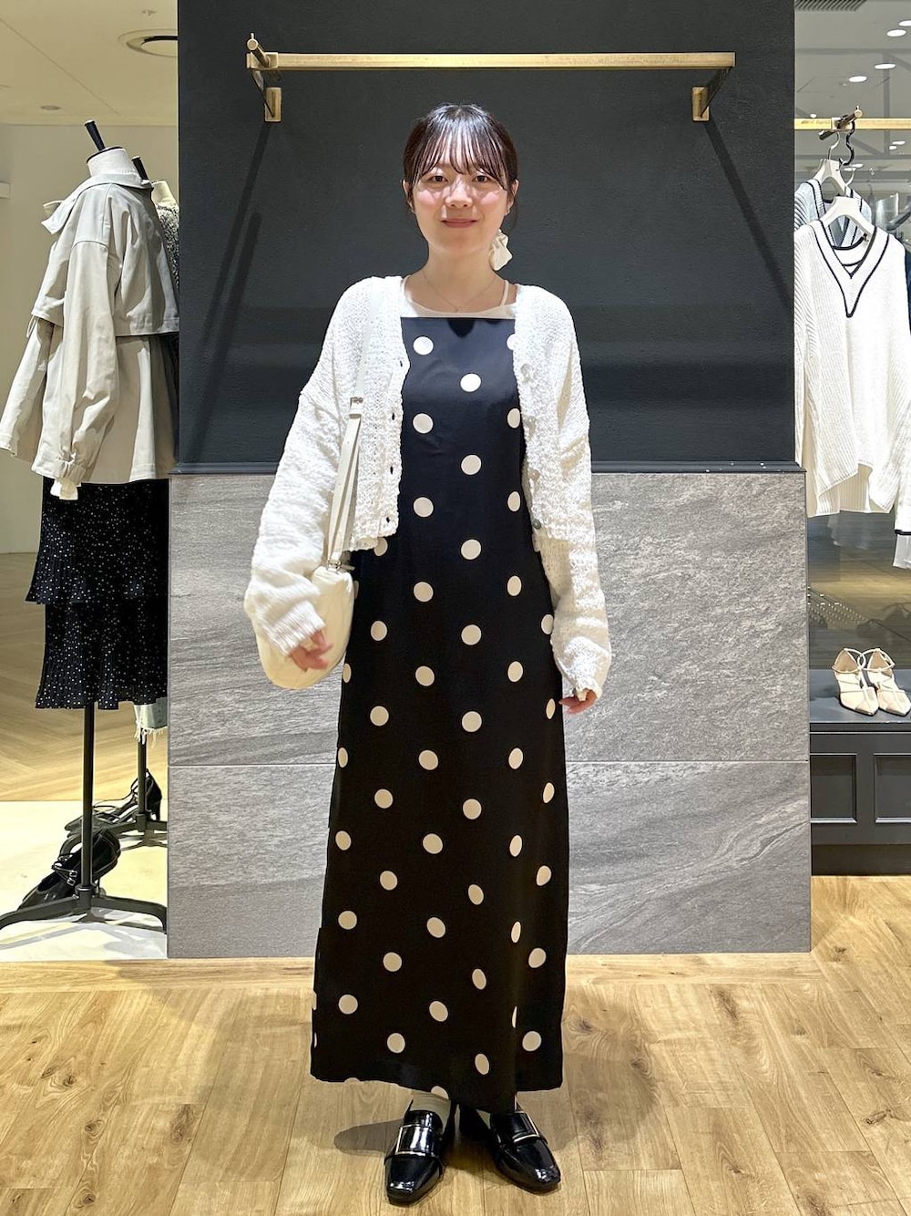 tutuemem(apart by lowry ルクアイーレ)のワンピース「ドットナローキャミワンピース」を使ったコーディネート