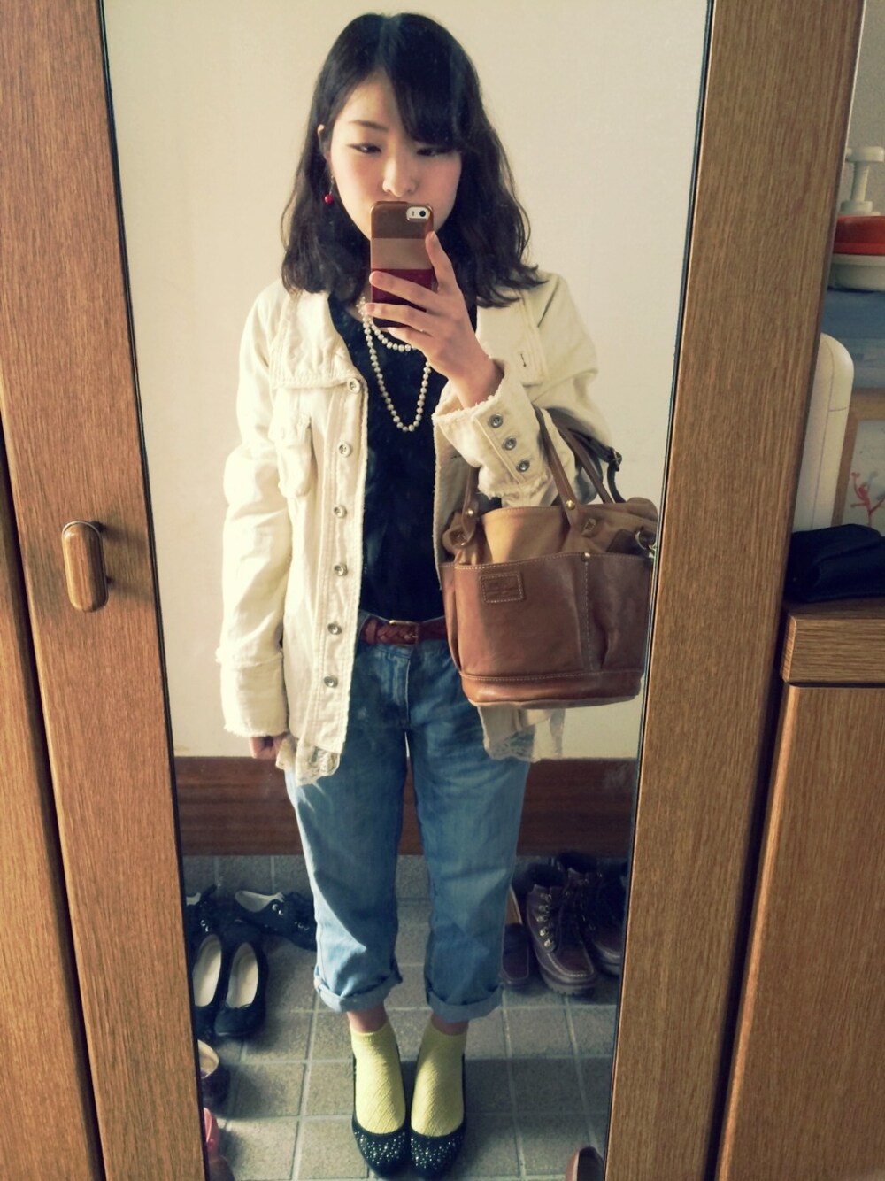 グリーン系のソックス/靴下を着用したレディースの春コーディネートの1枚目の写真
