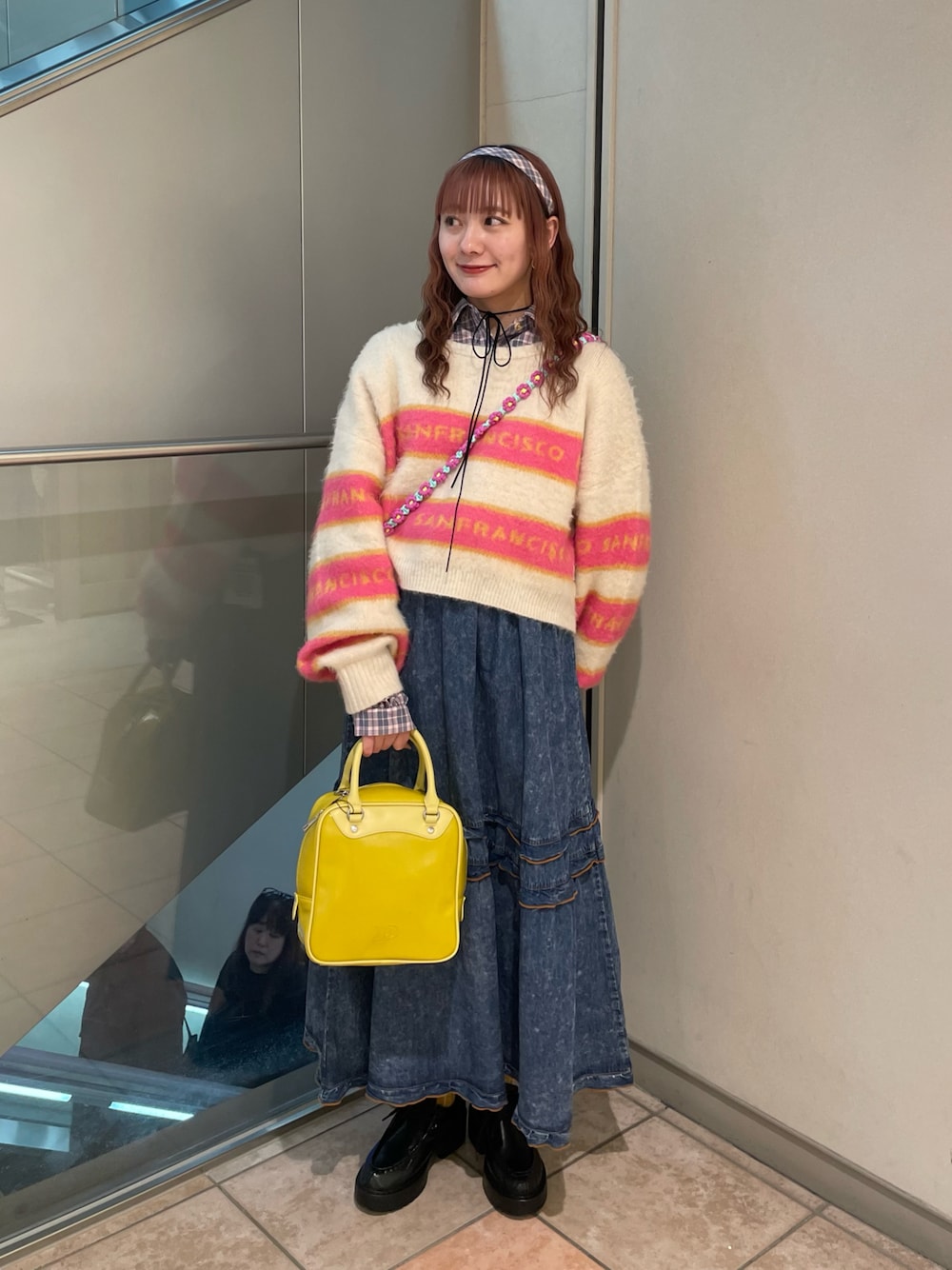 つぐみ(CIAOPANIC)のニット/セーター「【HELLO.SANFRANCISCO/ハローサンフランシスコ】ブラッシングジャガードロゴニット」を使ったコーディネート