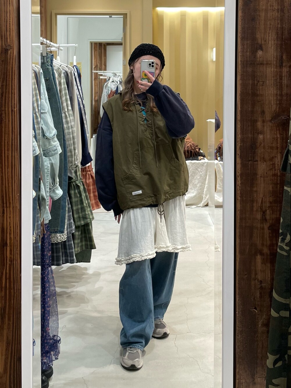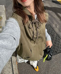 骨格タイプ:ストレート 着用アイテム:ベスト ・オールシーズン◎ ・裾の紐でシルエット調節可能 ・お尻周りが隠れるサイズ感