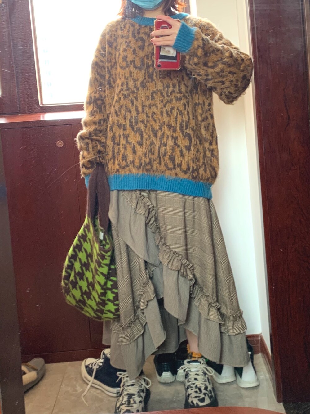 土豆皮つううううのニット/セーター「パターンモヘアライクニット」を使ったコーディネート