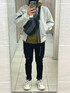 新しく買ったボリューミーなホワイトのボンバージャケットとアースカラー?のパーカーにスキニーなカーゴパンツとボリューミーなオニツカタイガーの新色DENTIGREのセットのコーデでした。 何系なんだろうか?