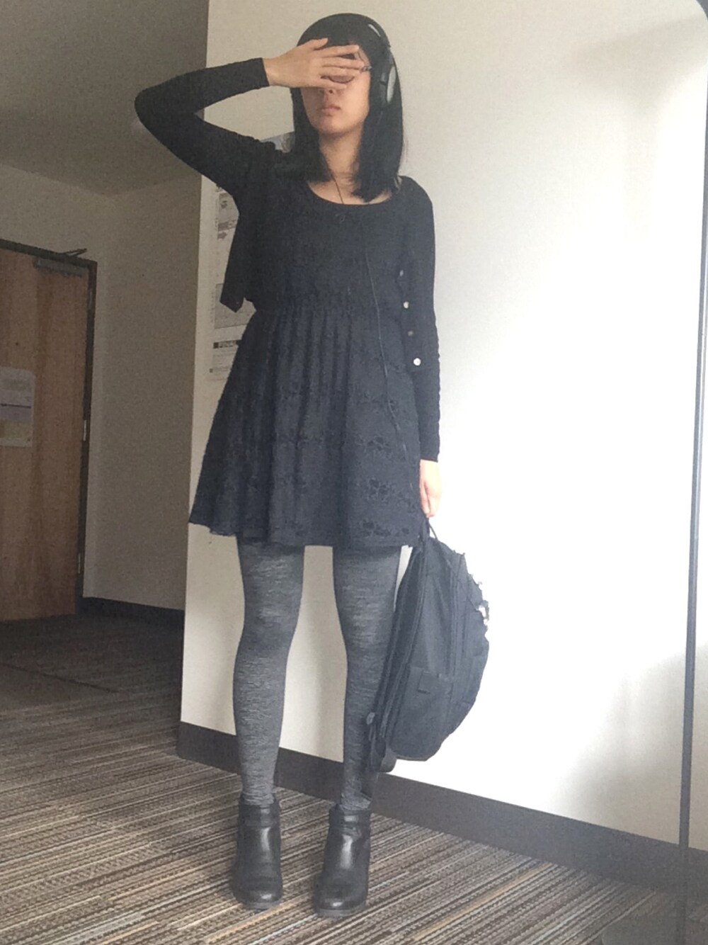 Lucyのワンピース「black lace dress」を使ったコーディネート