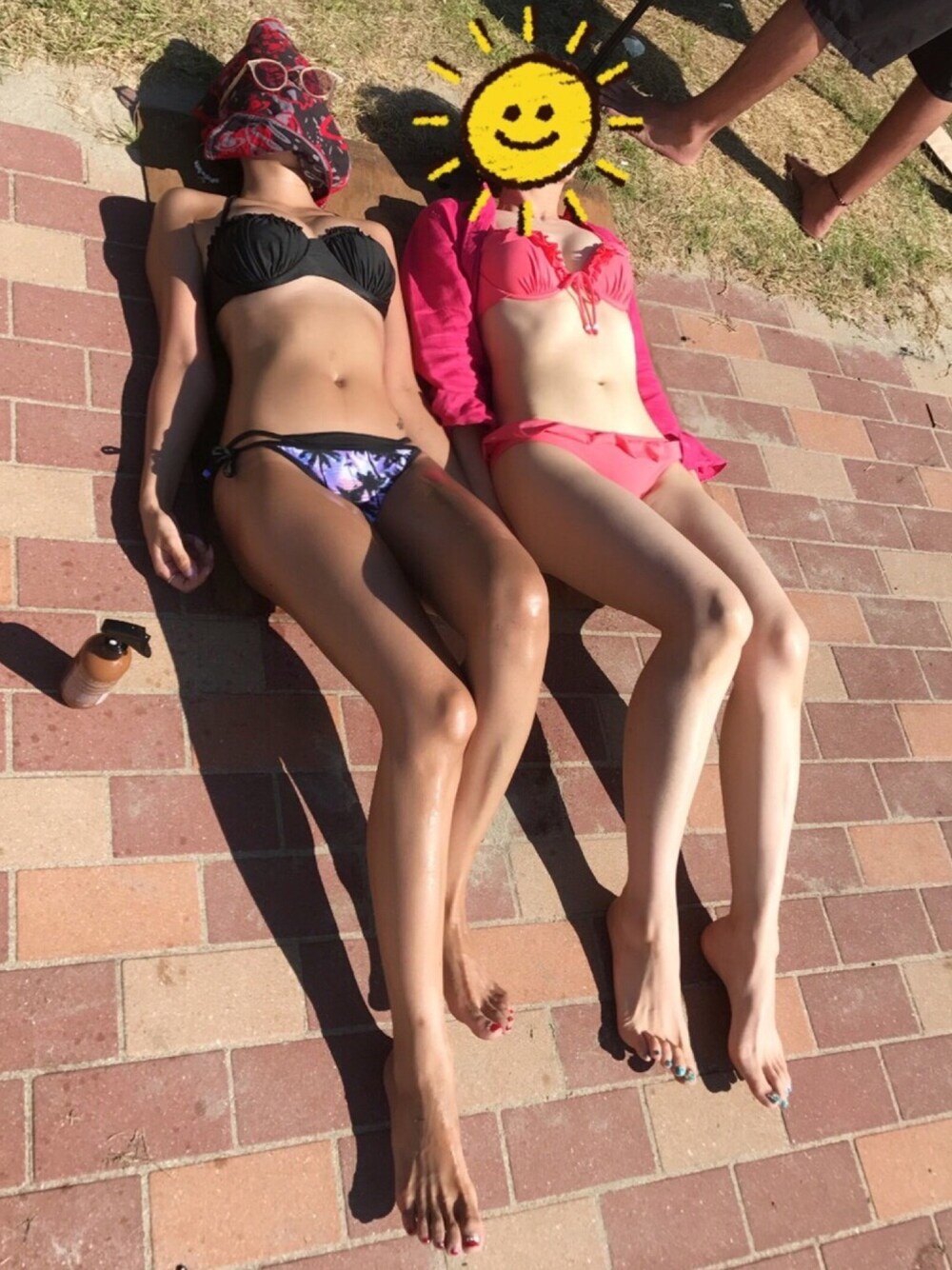 タンニングタイム🌴🤘🏽🌈🌈🌈 左 me🙋 顔の守り方www😂 お友達と並ぶとオセロ⚫️⚪️ お友達の水着👙もTwinkのです💓