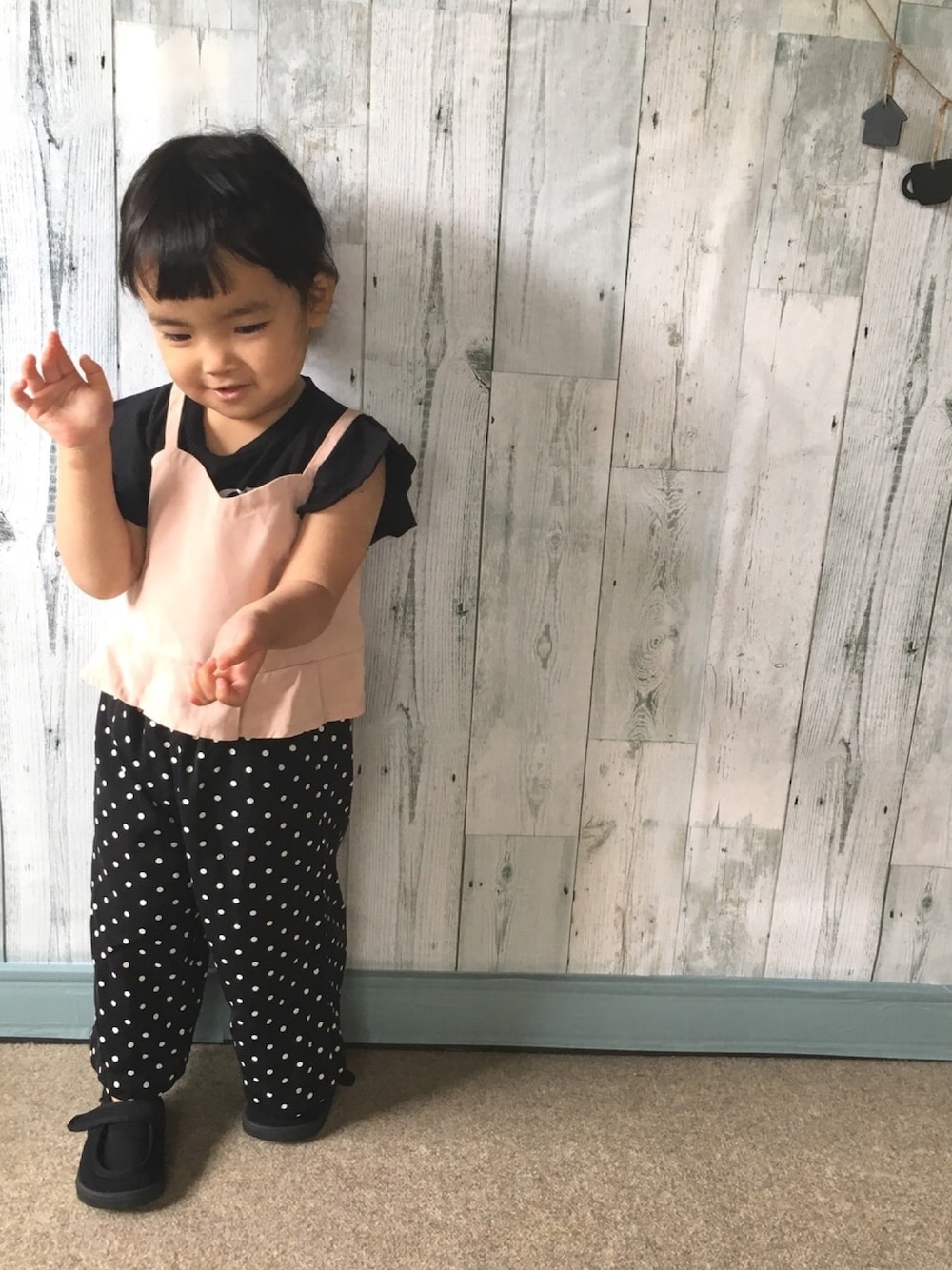 twinkle♡twinkle♡ のTシャツ/カットソー「ドット柄ビスチェ付き長袖リブTシャツ&パンツセット」を使ったコーディネート