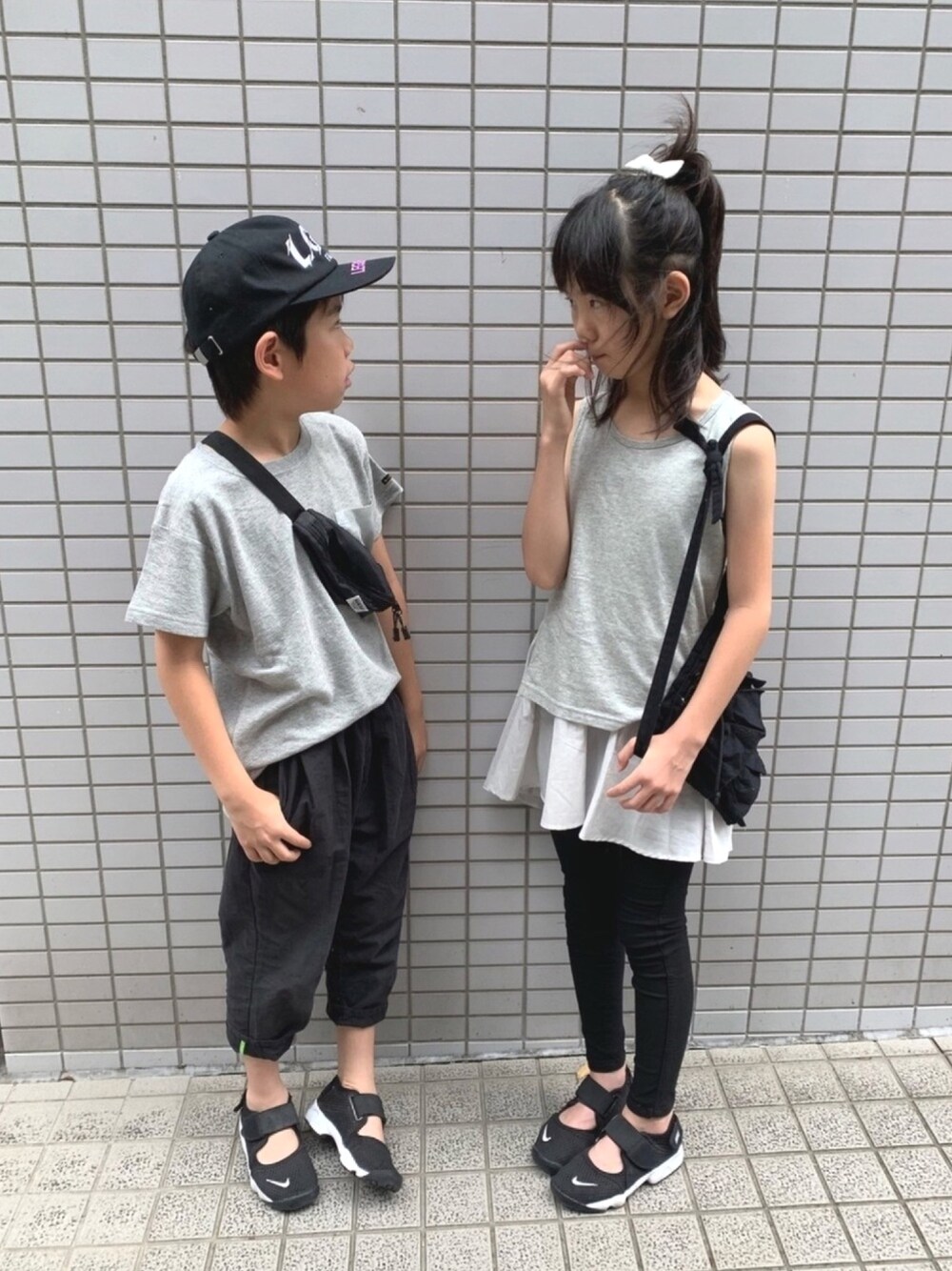 グレーとブラック。 ブランシェスさんの異素材トップス😊 息子のTシャツはポケットのところ。 娘のトップスはペプラム部分が異素材になってます✨ グレーのワントーンでシンプルなのに可愛い❤️ いつもありがとうございます🤗✨