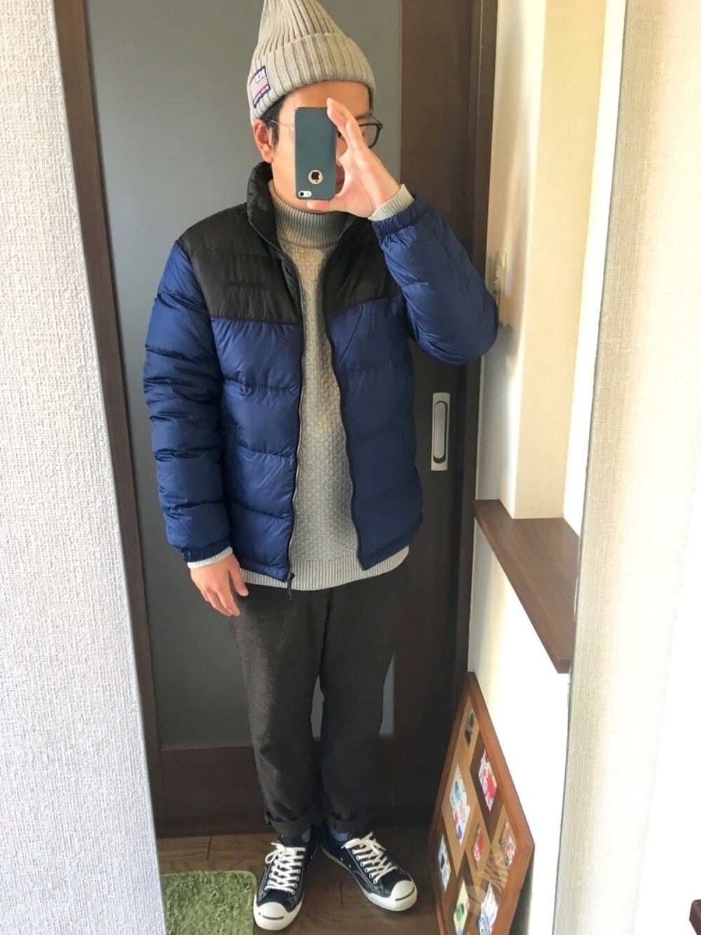 新春初買いで買って不良返品したダウンの 代わりに買ったファーストダウン。 あったかくて、ぶくぶく着膨れしないのが良き。お気に。 イロチ買いのユニクロモックネックはオンラインクーポンで確保。