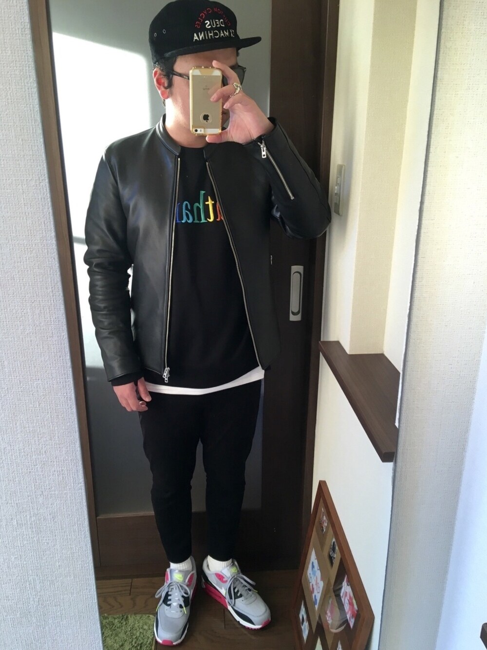 タイトタイト。 LIDNMのライダース、オクのセカストでゲト。 キャップはコーデュロイ。 サングラスは眼鏡市場。見えないけど。