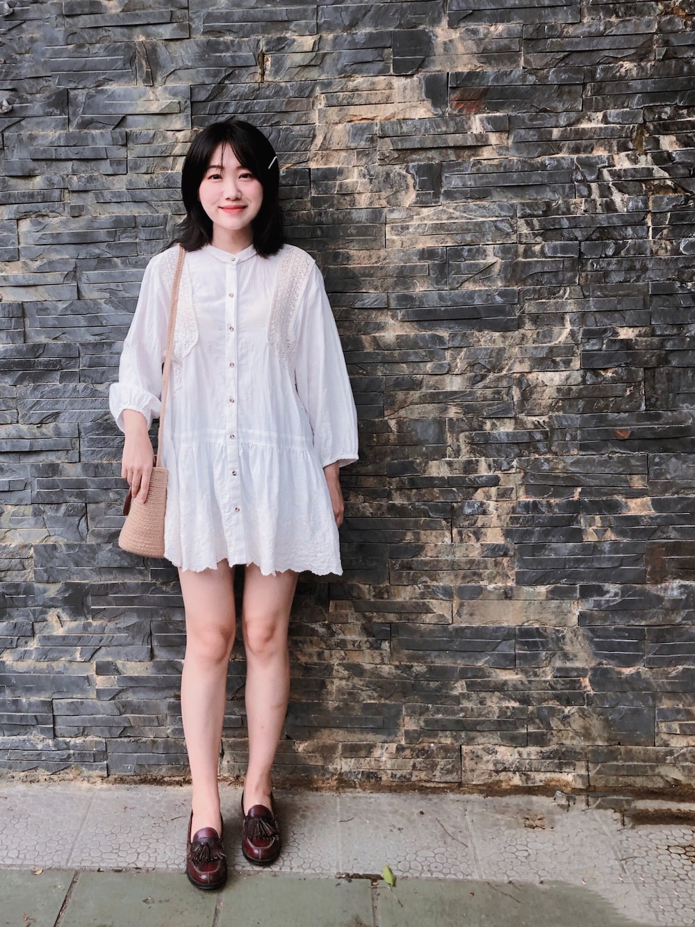 甜美系连衣裙 草编包 小皮鞋 一组甜美的夏日搭配