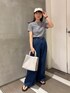 DOORS×プチバトーの別注Tシャツ 胸元のブランドロゴデザインはDOORSだけのデザインです^^ すごく柔らかく肌に優しい着心地で スッキリしたシルエットなので使い勝手抜群です◎ ワイドパンツと合わせてシルエットが綺麗に見えるようにしました!