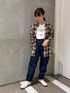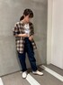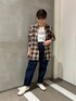 羽織るだけで一気に秋っぽくなるチェックシャツ ウール配合ですが肌触りはさらっとしていて長い時期使えます◎ デニム、スニーカーと合わせて古着っぽいカジュアルな合わせにまとめました^^
