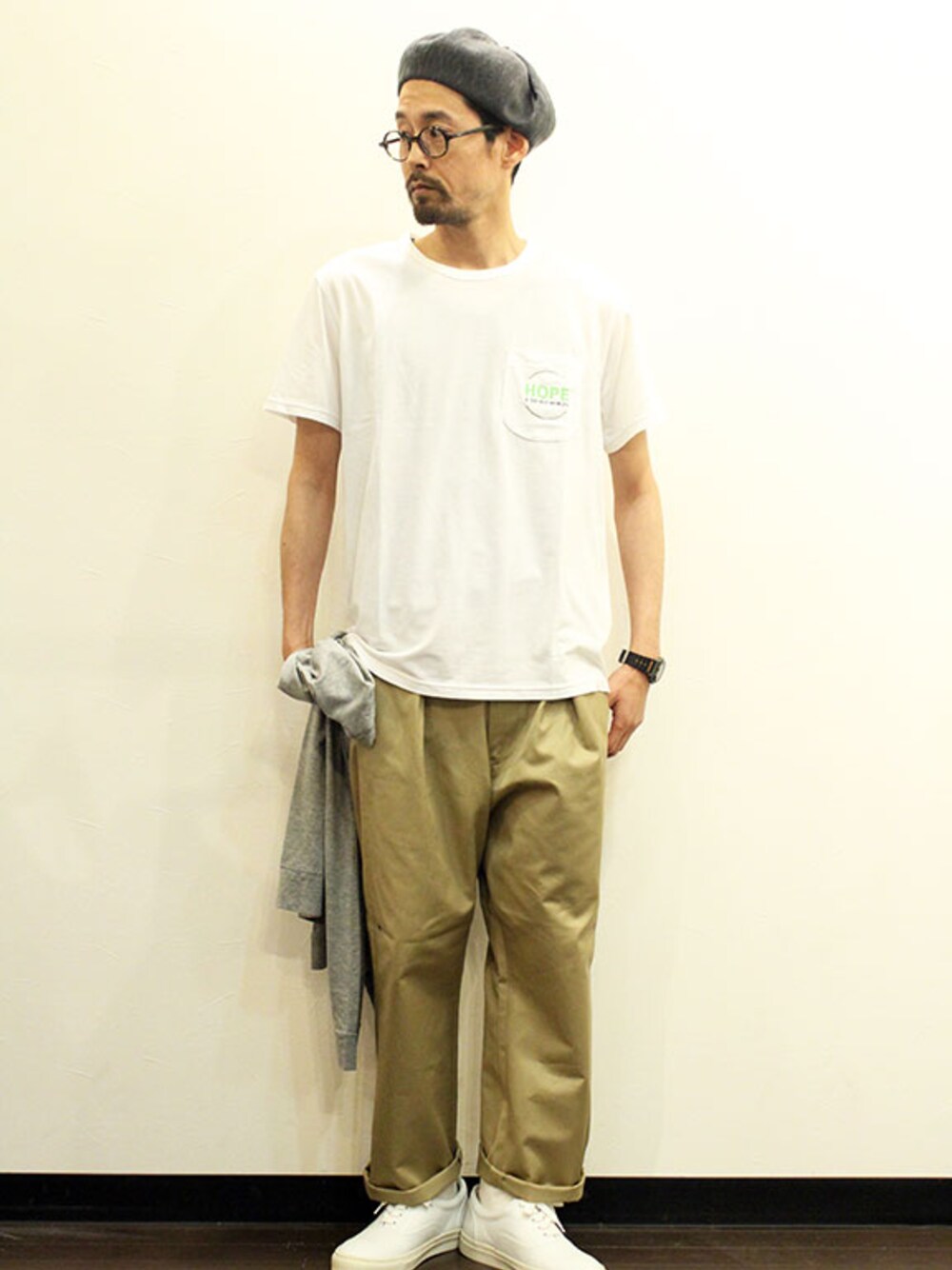 [モデル 168cm 54kg 足サイズ 26cm ] CAP : ISLAND KNIT WORKS (アイランドニットワークス) " De La - L " TEE : miraco (ミラコ) " Despair " Tee (サイズM着用) PANTS : ink (インク) Adjustment Tuck Pants " DEFORMATION " (サイズM着用) SHOES : UNITED LOT. (ユナイテッドロット.) " Oxford Sneaker " Smooth Leather (サイズS着用) CARDIGAN : MANUAL ALPHABET (マニュアル アルファベット) 60/2 トルファントップ 天竺CARDIGAN (サイズ2着用)