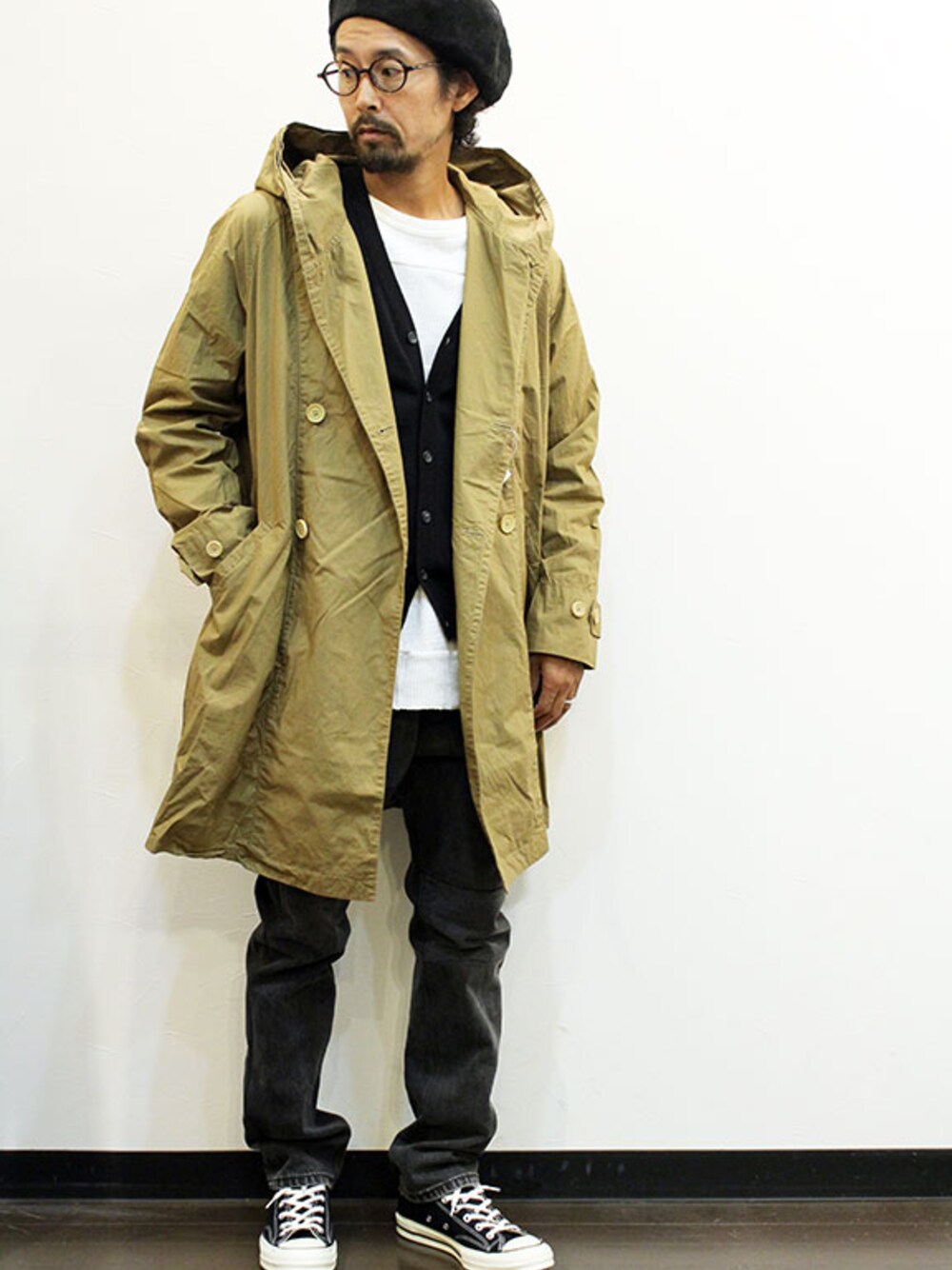 nakajiのトレンチコート「MANUAL ALPHABET (マニュアル アルファベット) WANDERER COAT overdey」を使ったコーディネート