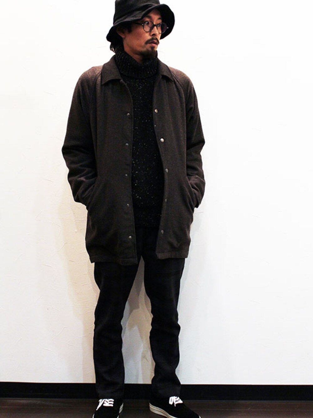 [モデル 168cm 54kg 足サイズ 26cm ] HAT : HEALTH (ヘルス) " UFO HAT " Wool COAT : HEALTH (ヘルス) " COACH JACKET " (サイズS着用) KNIT : FISHERMAN OUT OF IRELAND " Polo Neck Sweater " (サイズS着用) PANTS : HURRAY HURRAY (フレイ フレイ) " CHECK FLARE PANTS " (サイズ0着用) SHOES : UNITED LOT. (ユナイテッド ロット.) " Wingtip Sneaker " (サイズS着用)