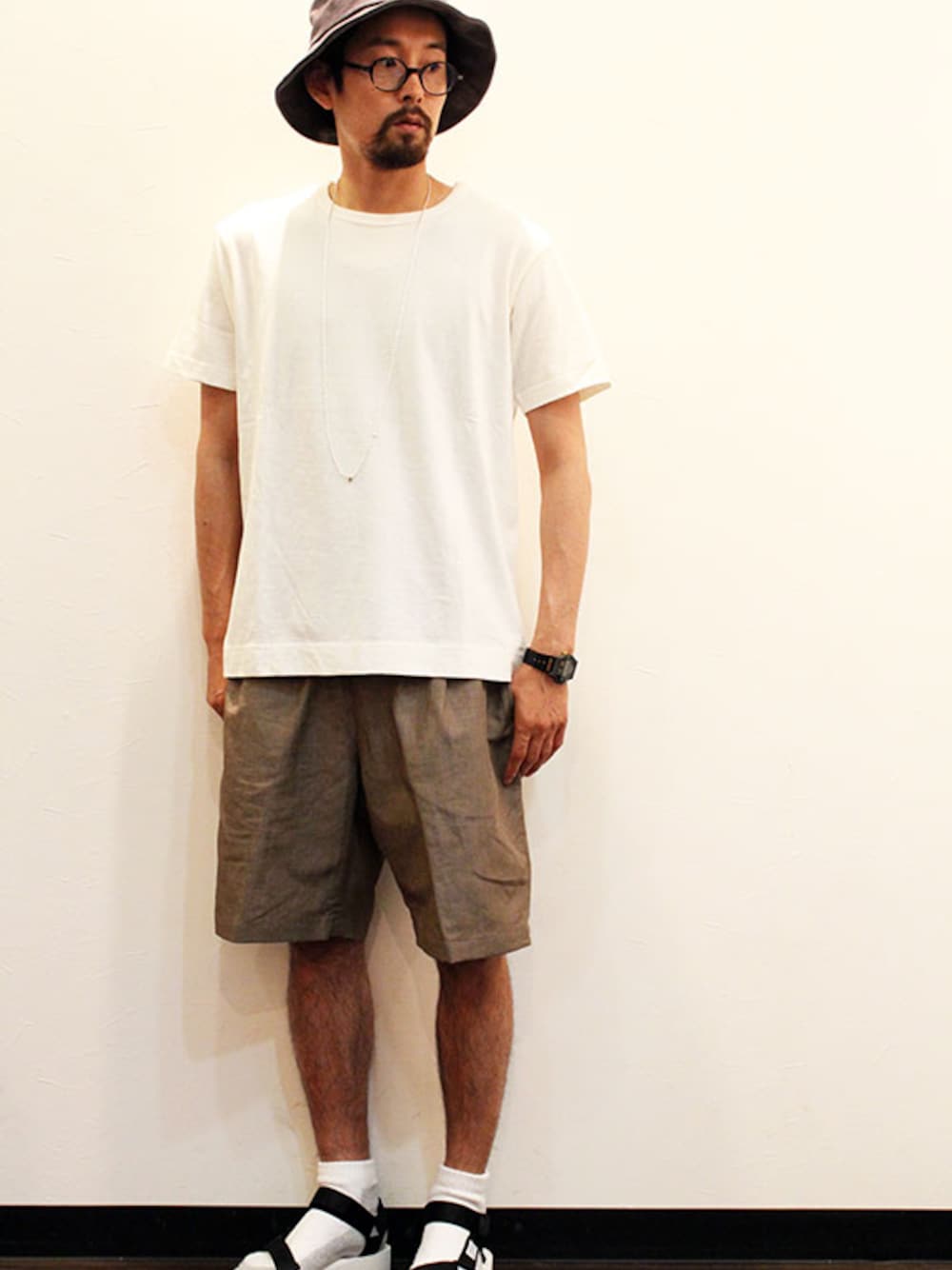 [モデル 168cm 54kg 足サイズ 26cm ] HAT : HEALTH (ヘルス) " UFO HAT " LINEN NECKLACE : NL (ニール) " Sian " TEE : HEALTH (ヘルス) " 247 BIG TEE " (サイズS着用) SHORTS : HEALTH (ヘルス) " Easy pants #6 " (サイズS着用) SANDAL : SUICOKE (スイコック) " DEPA " V (サイズUS8着用)