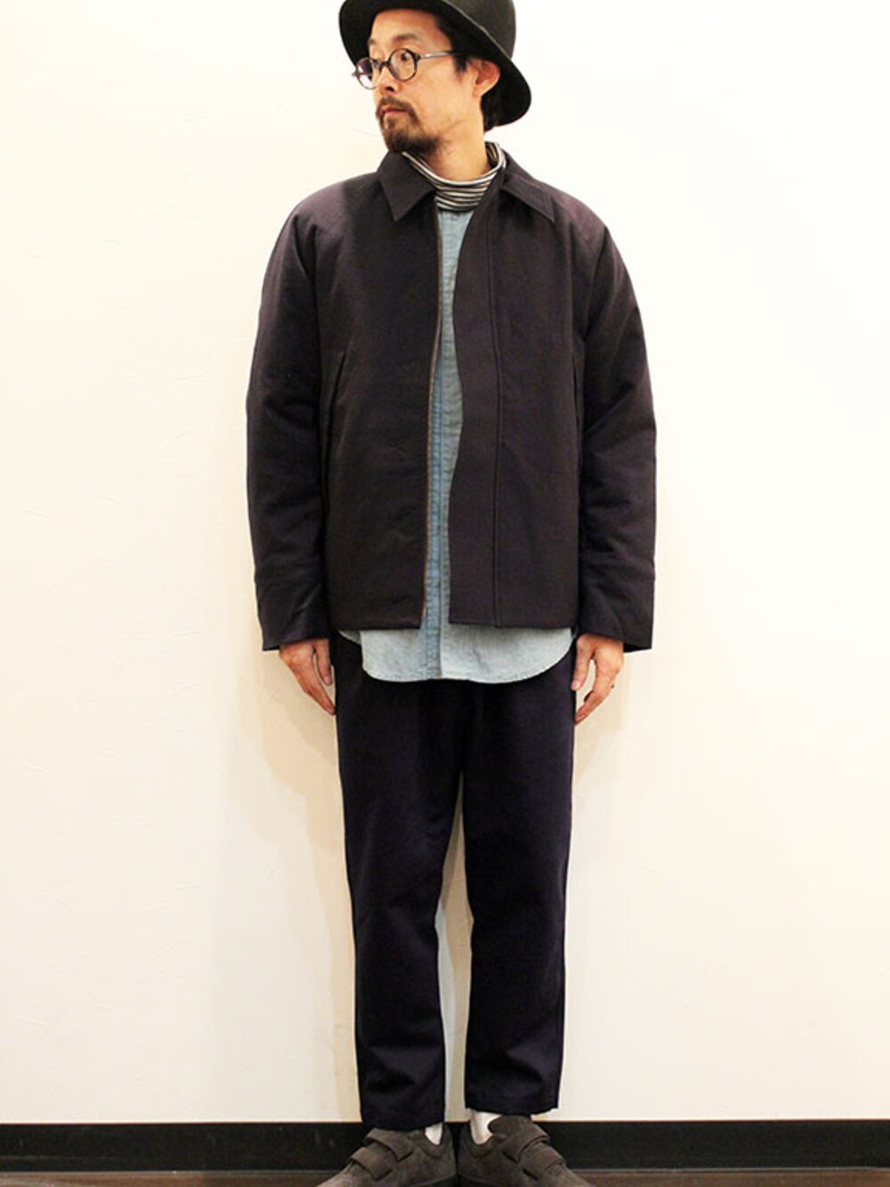 [モデル 168cm 54kg 足サイズ 26cm ] HAT : Nasngwam (ナスングワム) ” ROOSEVELT ” HAT JACKET : HURRAY HURRAY (フレイ フレイ) " UTILITY BATTING JACKET " (サイズ0着用) SHIRT : HURRAY HURRAY (フレイ フレイ) " Western Shirts " (サイズ0着用) PANTS : HEALTH (ヘルス) " Easy pants #4 (サイズS着用) SHOES : AREth (アース) " Ⅰ velcro " (サイズUS8着用)