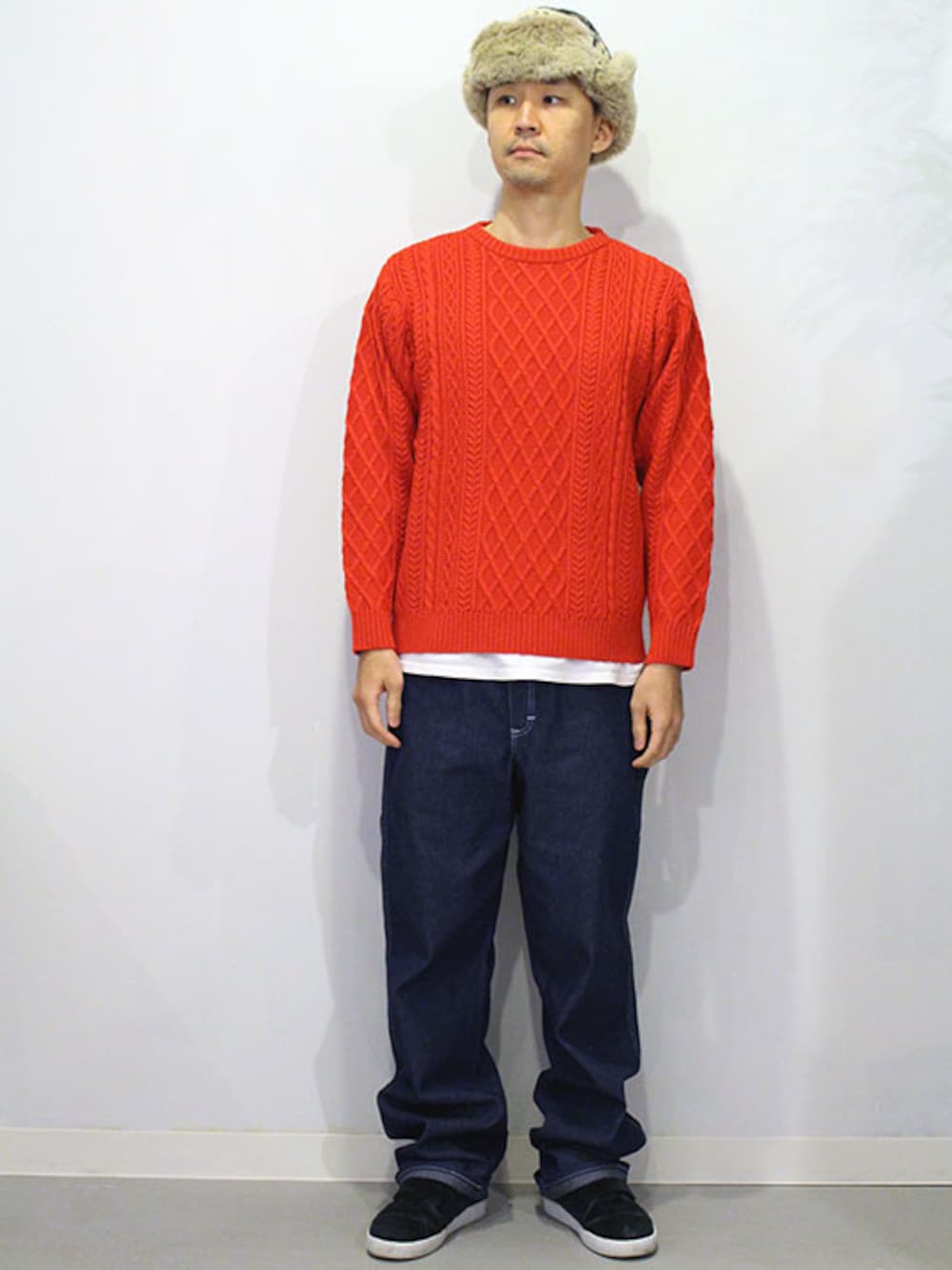 [モデル 178cm 67kg] CAP : ink (インク) Bomber Cap " RADIOHEAD " TOPS : ISLAND KNIT WORKS (アイランドニットワークス) " Island house Crew " (サイズ2着用) PANTS : POINTER BRAND (ポインターブランド) " ペインターパンツ " (サイズ34着用) SHOES : AREth (アース) " Ⅰ lace " (サイズUS10着用)