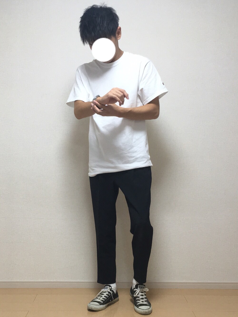 らりるのTシャツ/カットソー「Champion Authentic T-SHIRTS/ チャンピオン コットン ワッペン Tシャツ(1/2スリーブ) 無地T トップス」を使ったコーディネート